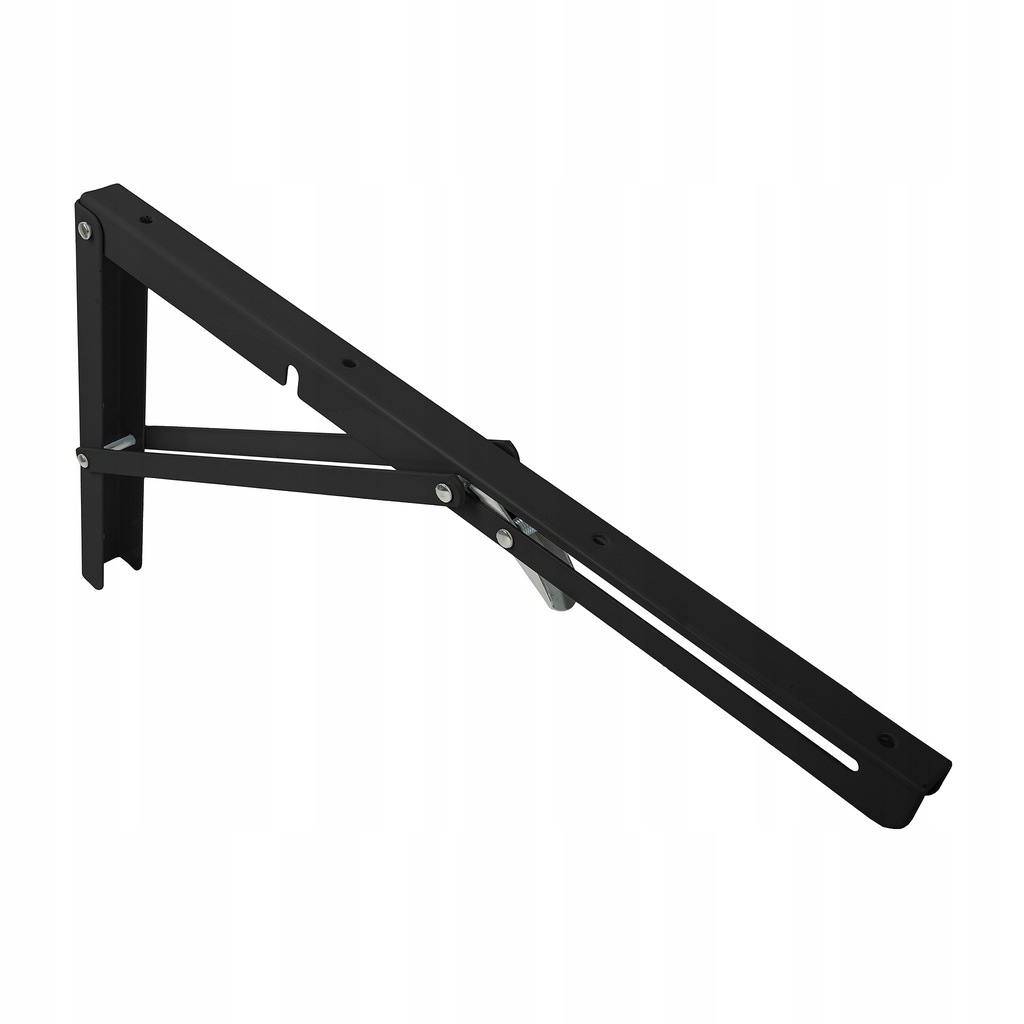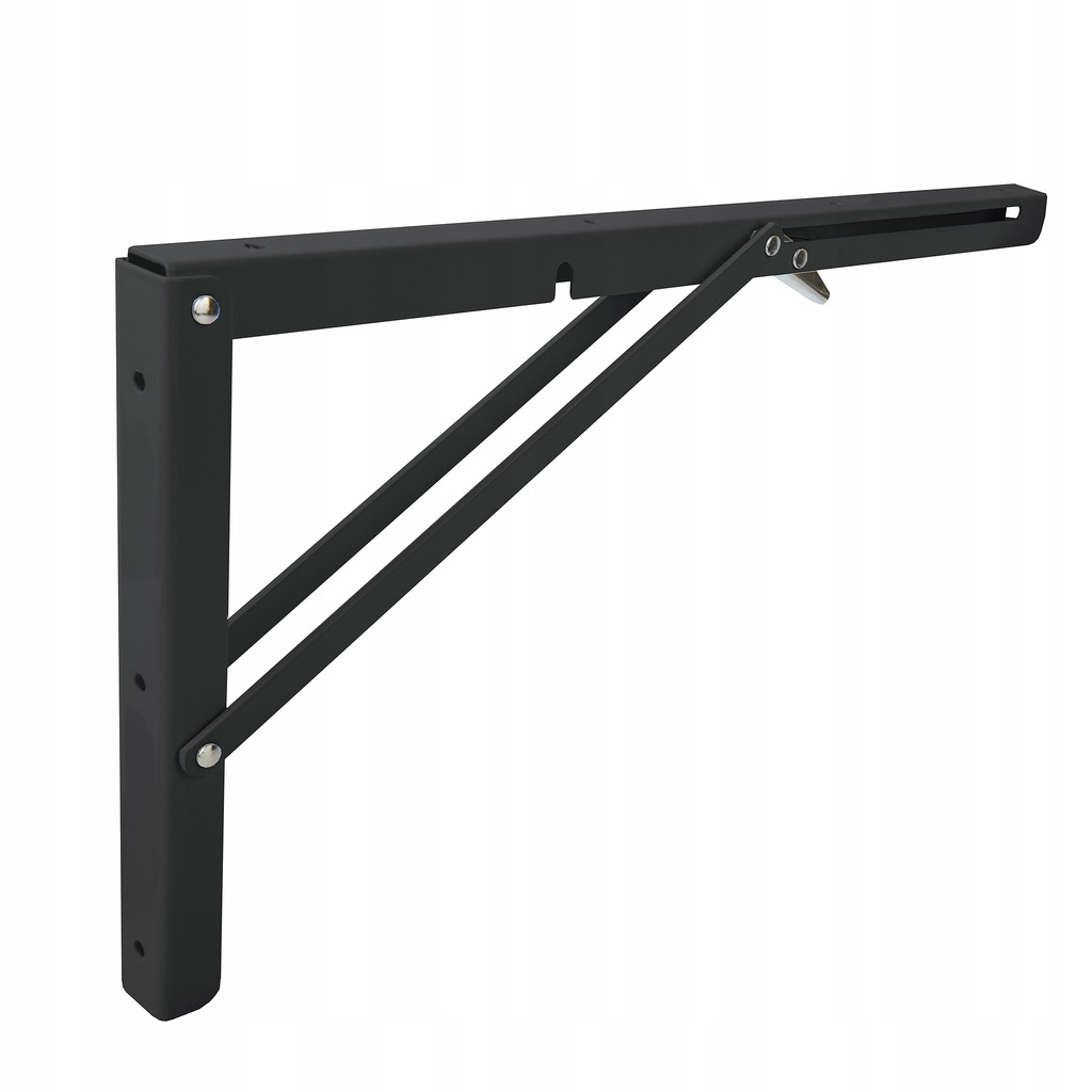- Kątownik pod półkę składany 300x155x1,5 mm w kolorze czarnym to praktyczny wspornik do budowy składanych półek i blatów.