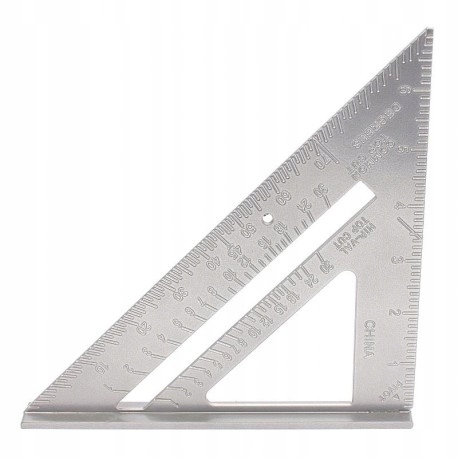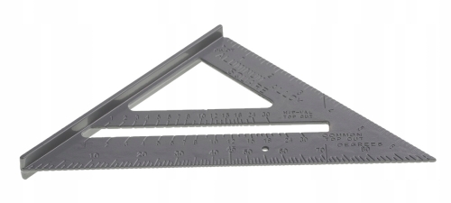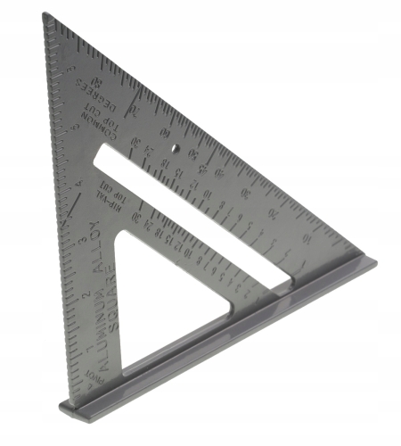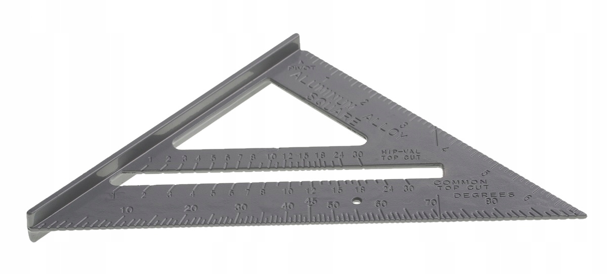 Wielofunkcyjny kątownik HIP-VAL, do krokwi, do wyznaczania linii równoległych, dowolnych kątów 0-90°, posiada stopkę, która zapewnia szybkie i precyzyjne ułożenie kątownika względem drewnianego elementu. Grawerowana podziałka.
