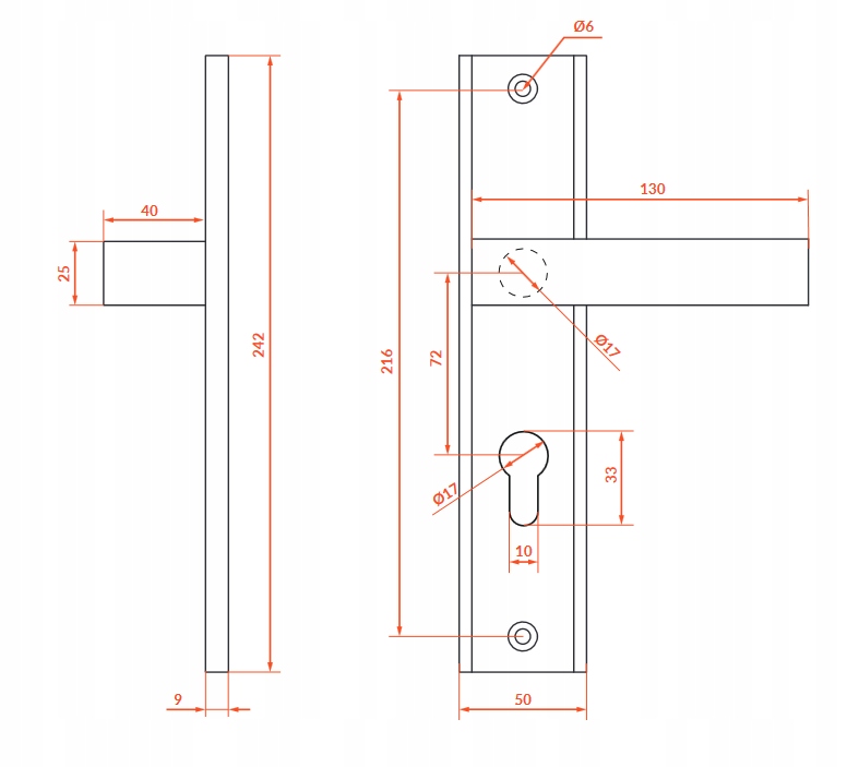 ✔️ Głębokość od szyldu do końca rękojeści: 49mm