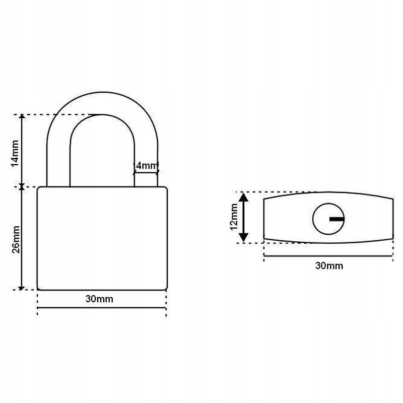 - wysokość kłódki bez pałąka: 26mm