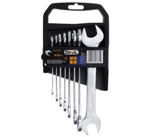 - Zestaw kluczy płaskich w wygodnym opakowaniu z tworzywa marki DREL.