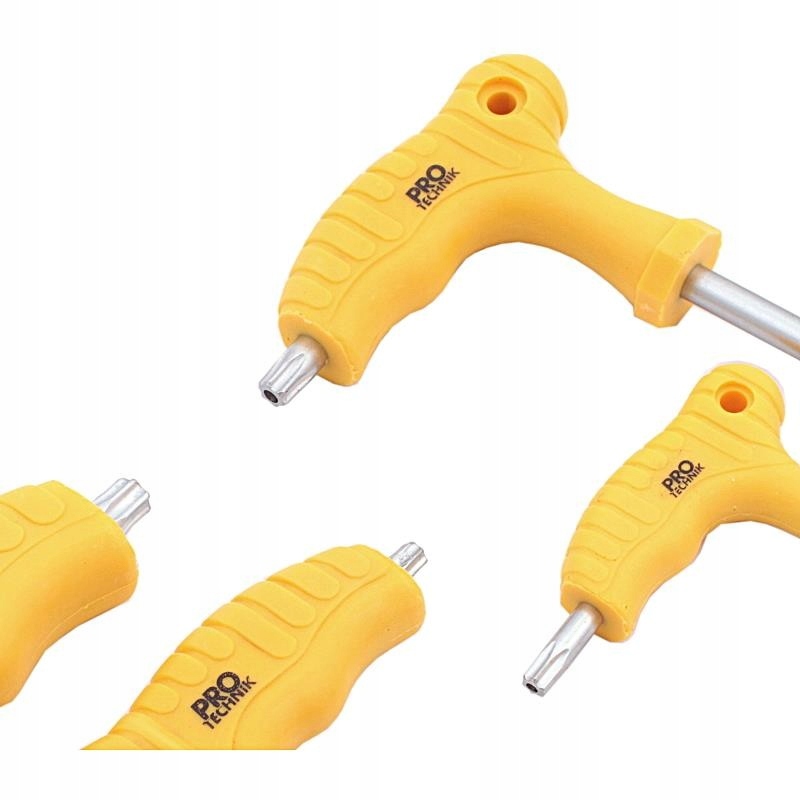 Zestaw kluczy imbusowych torx od tradycyjnych modeli różni się obecnością rękojeści – dzięki nim montaż i demontaż elementów złącznych będzie o wiele łatwiejszy, a operowanie narzędziem wygodniejsze.