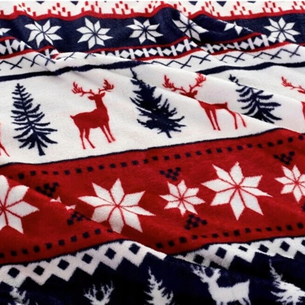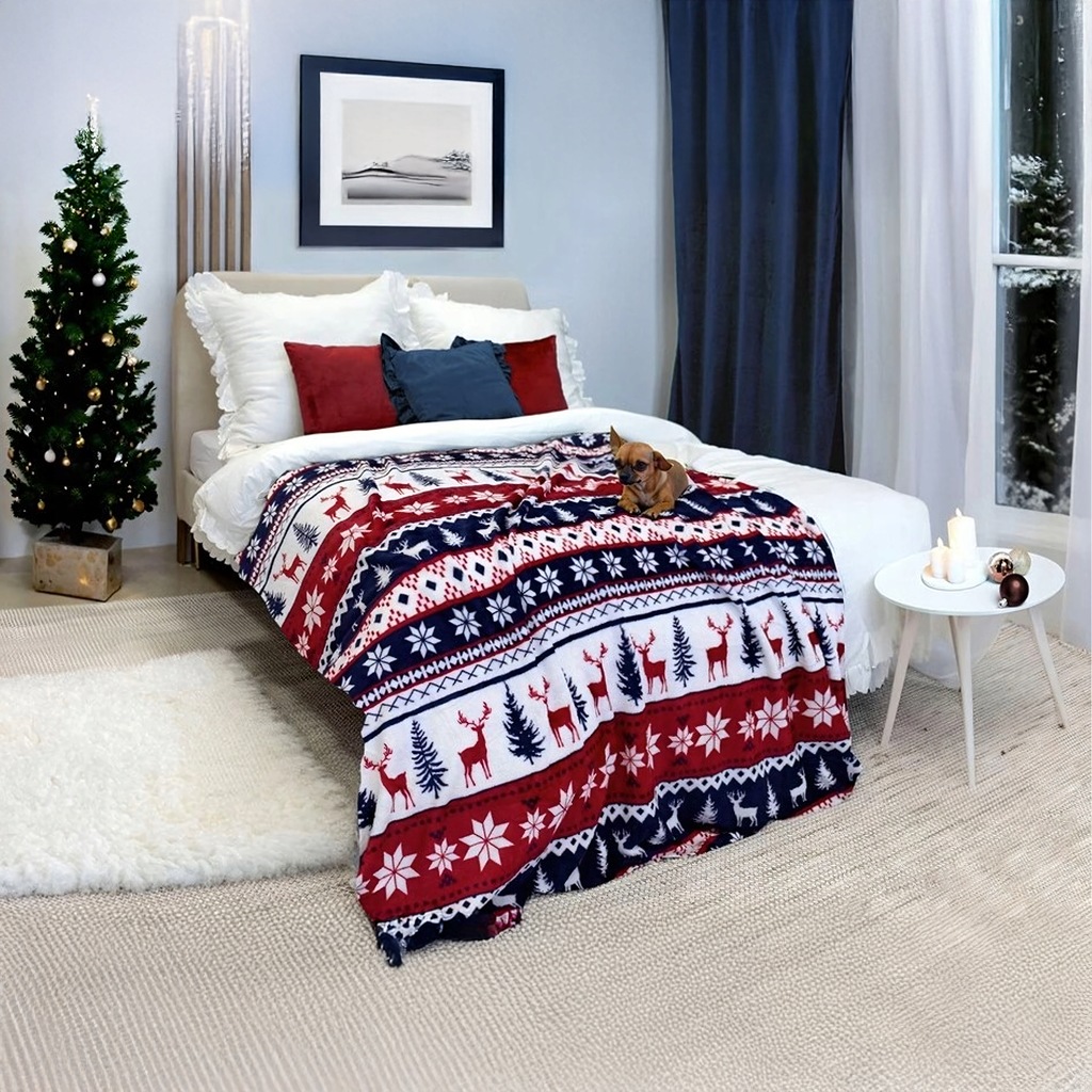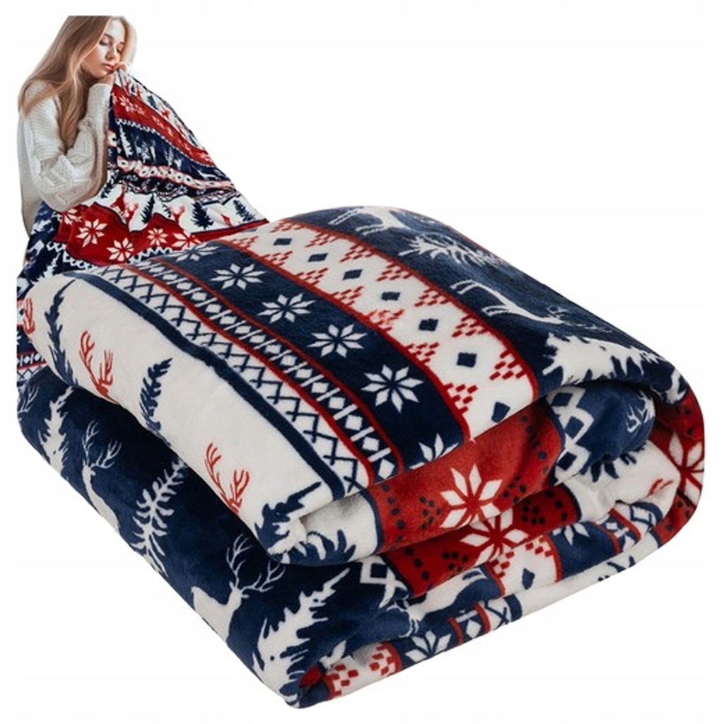 KOC ŚWIĄTECZNY ZIMOWY CIEPŁA MIĘKKA NARZUTA 120X150 CM DEKORACJA NA ŚWIĘTA