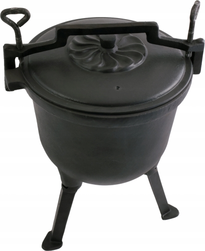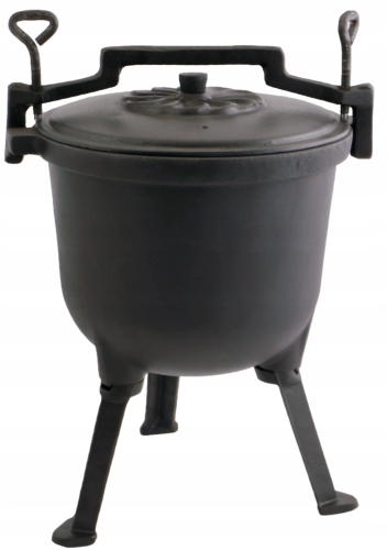 - Wysokiej jakości żeliwny kociołek myśliwski