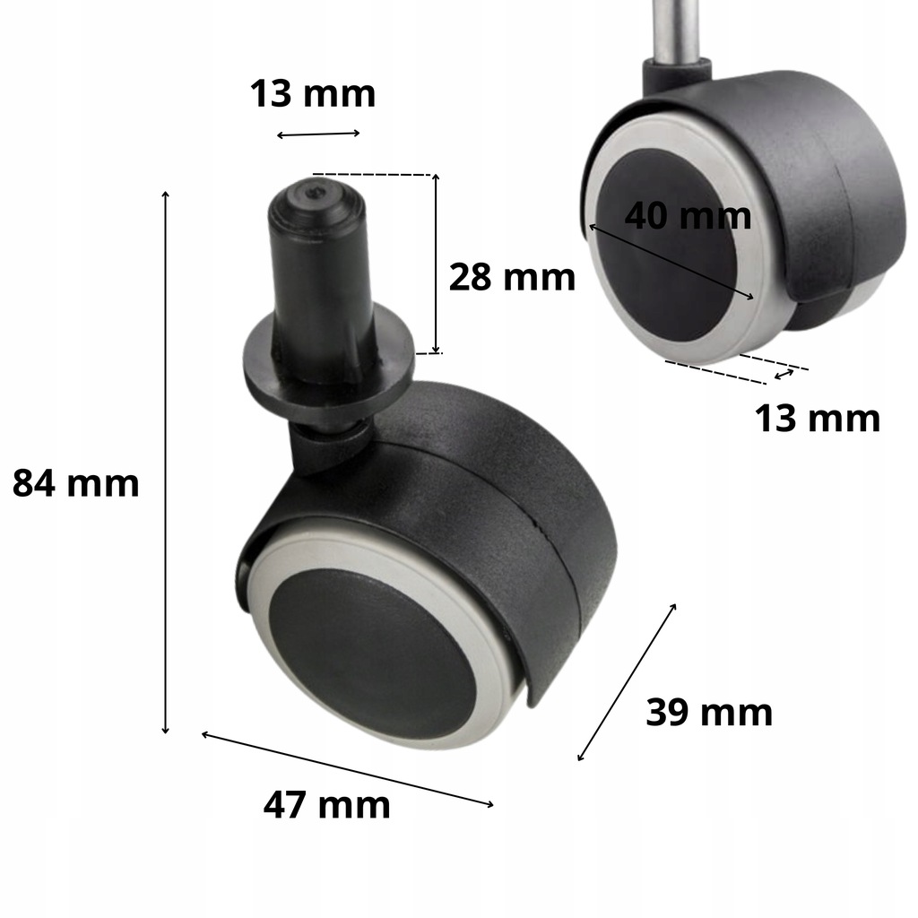 KÓŁKO OBROTOWE GUMOWANE Z BOLCEM 40 MM DO KRZESŁA STOLIKA KAWOWEGO CZARNE
