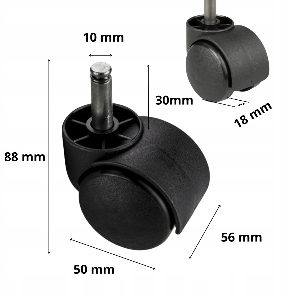 KÓŁKO OBROTOWE Z BOLCEM FI 50 MM KOMPLET KÓŁEK MEBLOWYCH DO MEBLI KRZESEŁ