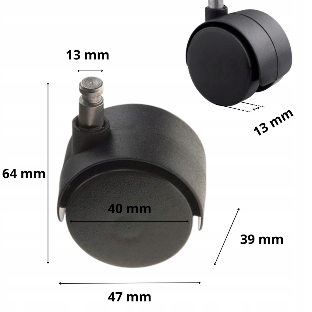 KÓŁKO OBROTOWE Z BOLCEM PLASTIKOWE FI 40 MM DO KRZESEŁ BIUROWYCH STOLIKÓW