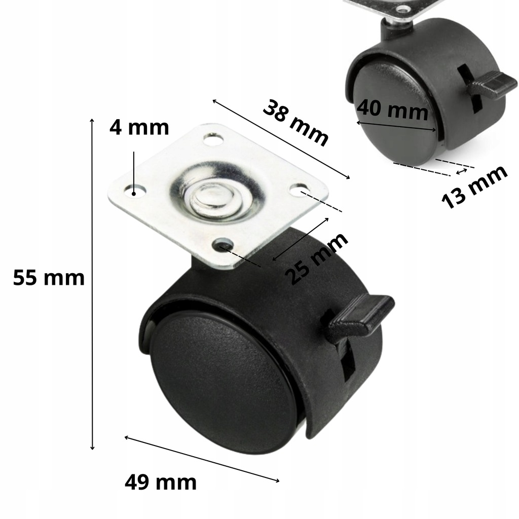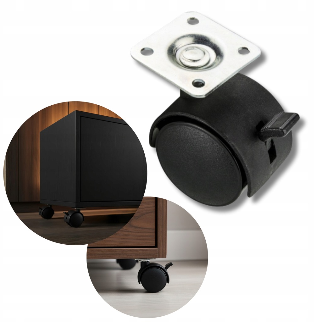 KÓŁKO OBROTOWE Z PŁYTKĄ I HAMULCEM FI 40 DO KRZESŁA STOLIKA SZAFKI CZARNE