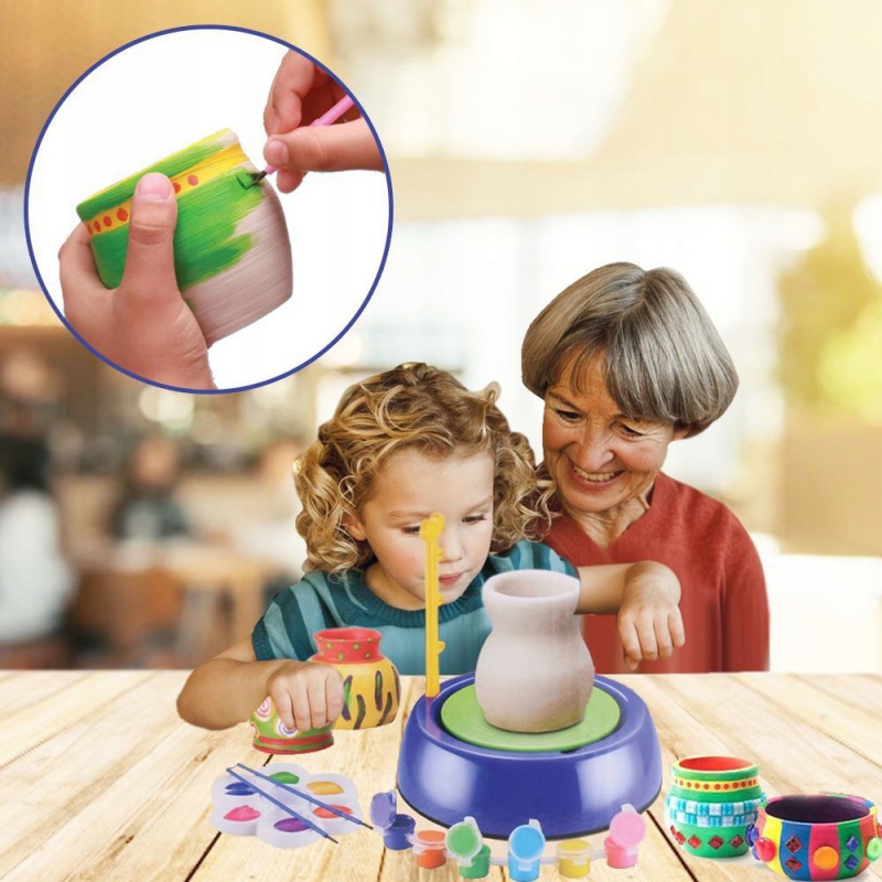 KOŁO GARNCARSKIE ZESTAW KREATYWNY Z GLINĄ FARBY NACZYNIA Z GLINY AKCESORIA