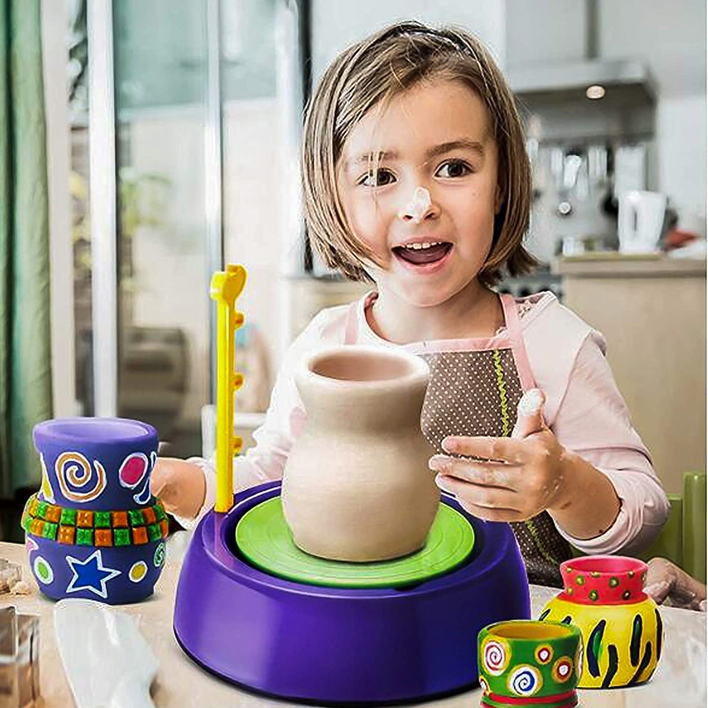 Zabawa przy użyciu koło garncarskiego jest bardzo kreatywna i rozwijająca, dzieci same mogą wymyślać kształty oraz wzory ulepionych przez siebie naczyń. Taka rozrywka pomaga ćwiczyć cierpliwość, rozwija zdolności manualne i wpływa na rozwój wyobraźni.