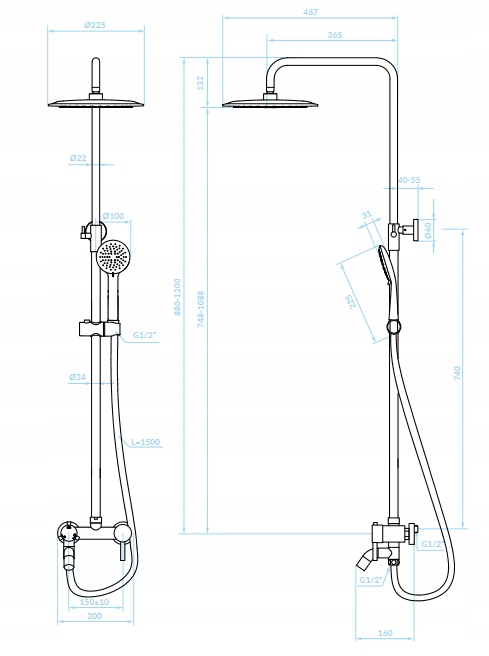 ▶ Wysokość(mm): 880-1200
