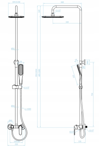 KOLUMNA NATRYSKOWA PRYSZNICOWA Z BATERIĄ CHROM