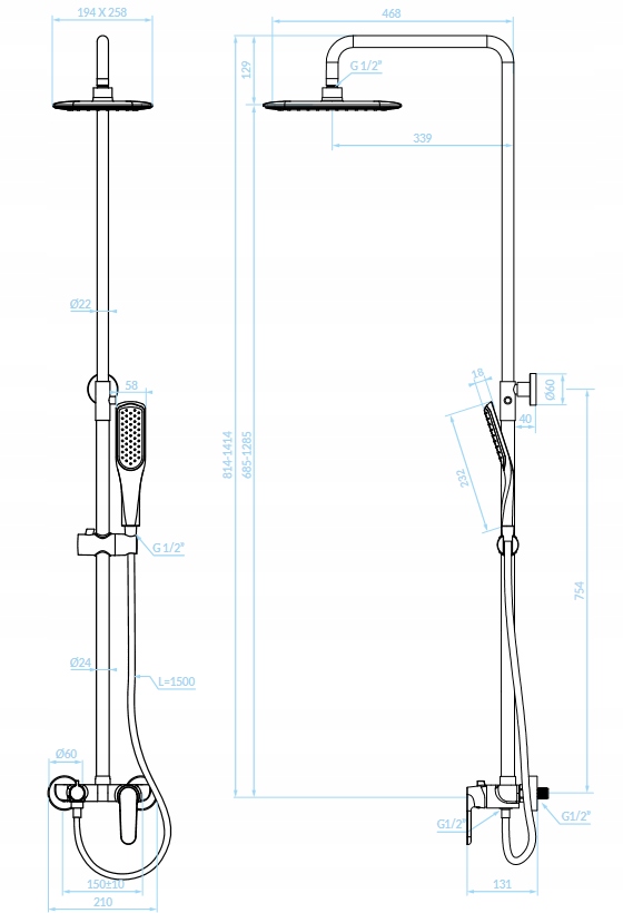 ☑️ Wysokość: 814-1414mm