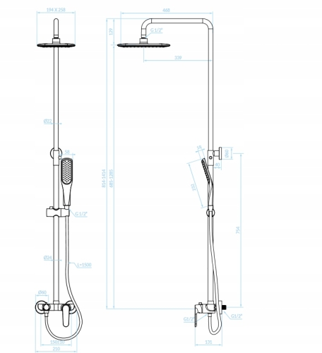 ☑️ Regulowana wysokość górnej deszczownicy: Tak
