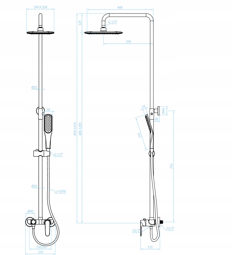 ☑️ Wysokość: 814-1414mm