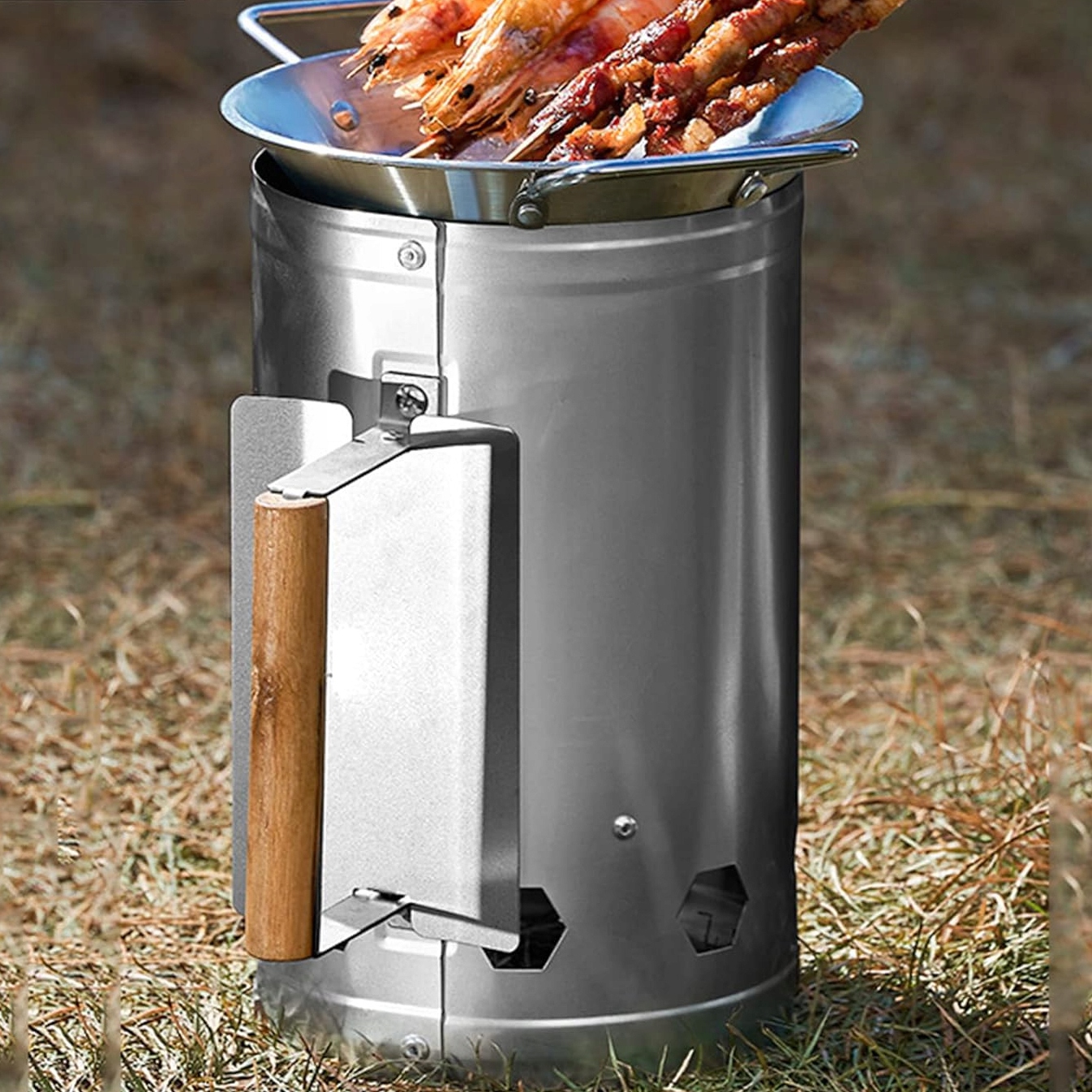 ✨Komin jest również bardzo łatwy w użyciu. Wystarczy napełnić go węglem lub brykietem, umieścić go na ruszcie i podpalić dolną część. Po kilku minutach węgiel lub brykiet będą gotowe do użycia, a Ty będziesz mógł cieszyć się smacznymi potrawami z grilla.