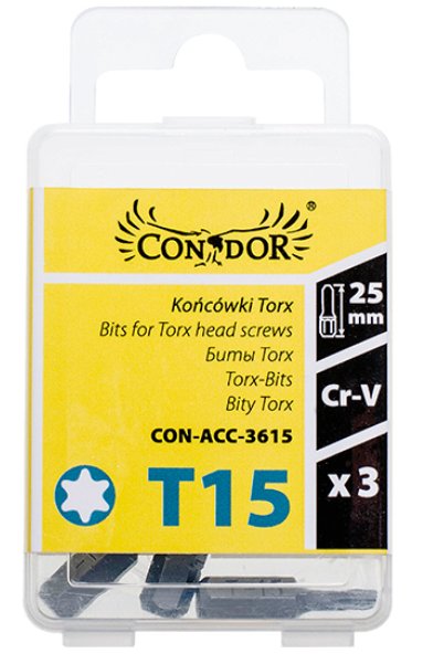 KOŃCÓWKI TORX T15 x 25 mm 3szt BIT BITY GROT TORXY