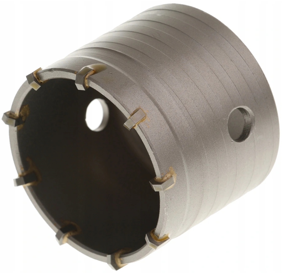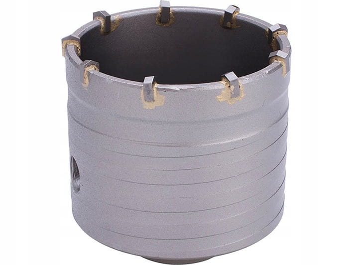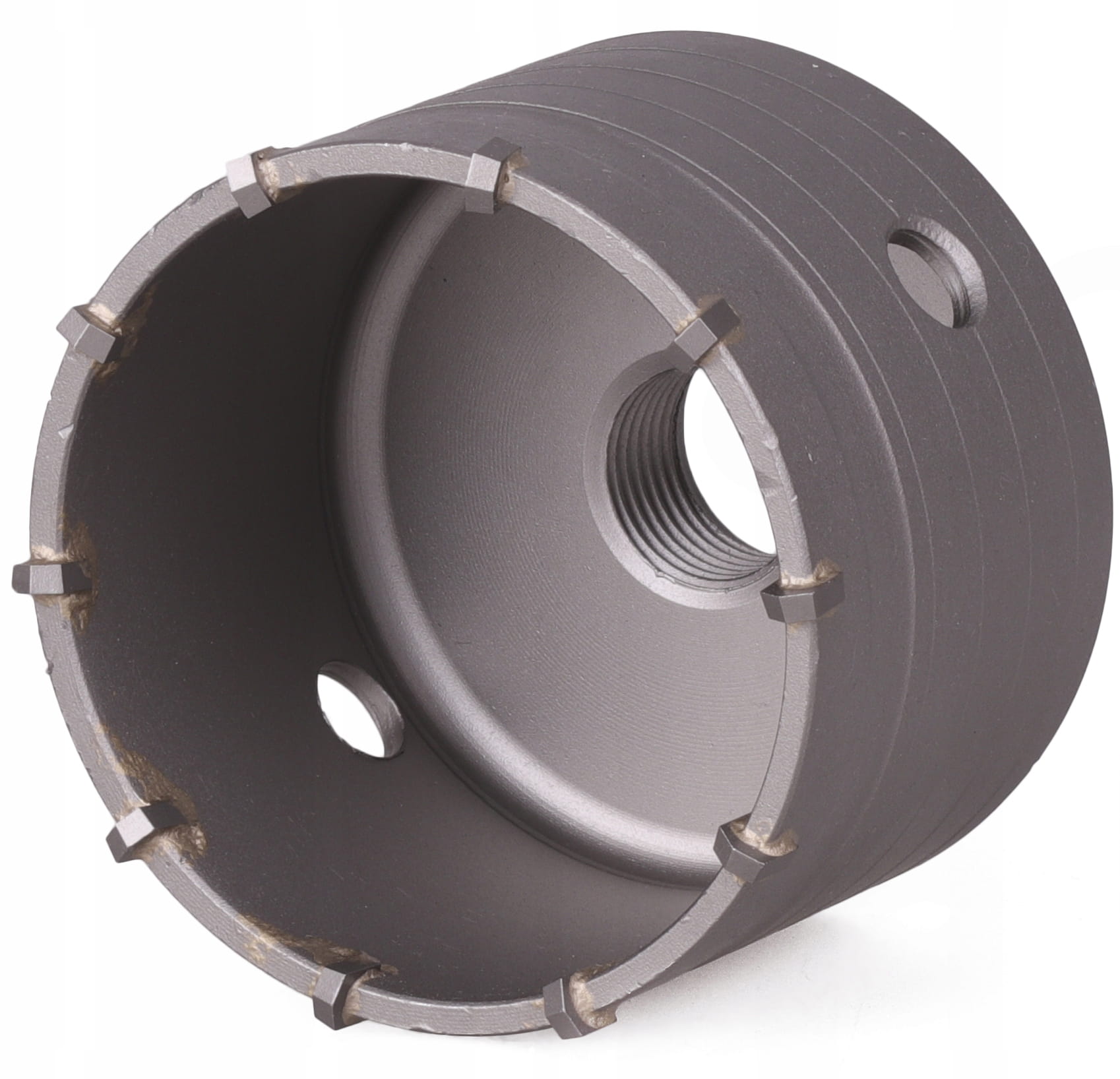 ▶ Solidna koronka wiertnicza z widią. Metalowa część konstrukcyjna została wykonana ze stali.