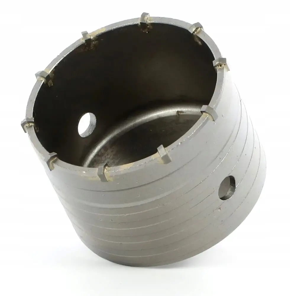 ▶ Solidna koronka wiertnicza z widią. Metalowa część konstrukcyjna została wykonana ze stali.