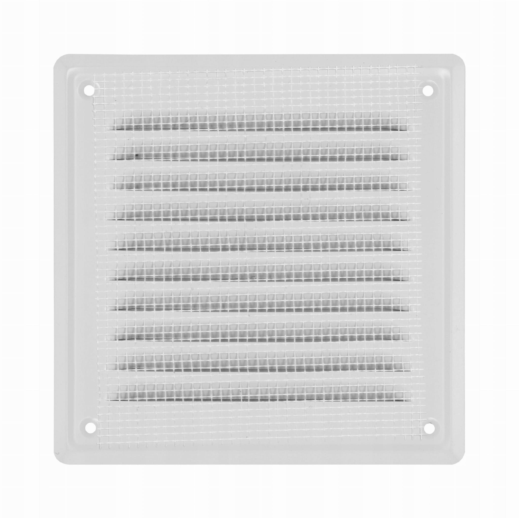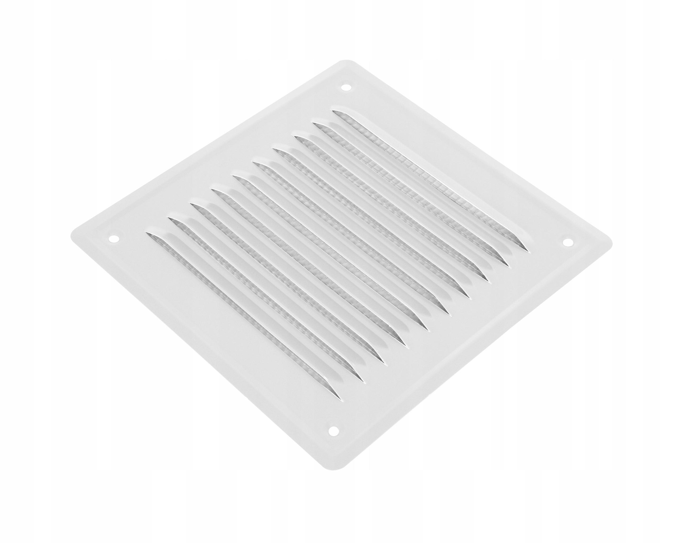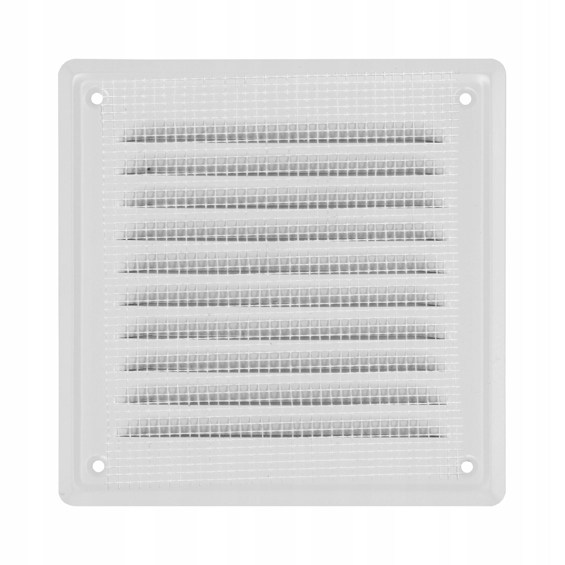 KRATKA 20x20 WENTYLACYJNA PŁASKA METALOWA Z SIATKĄ SKOŚNE ŻEBERKA BIAŁA