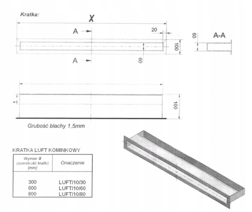 - Kratki o wymiarze 100 x 300 mm
