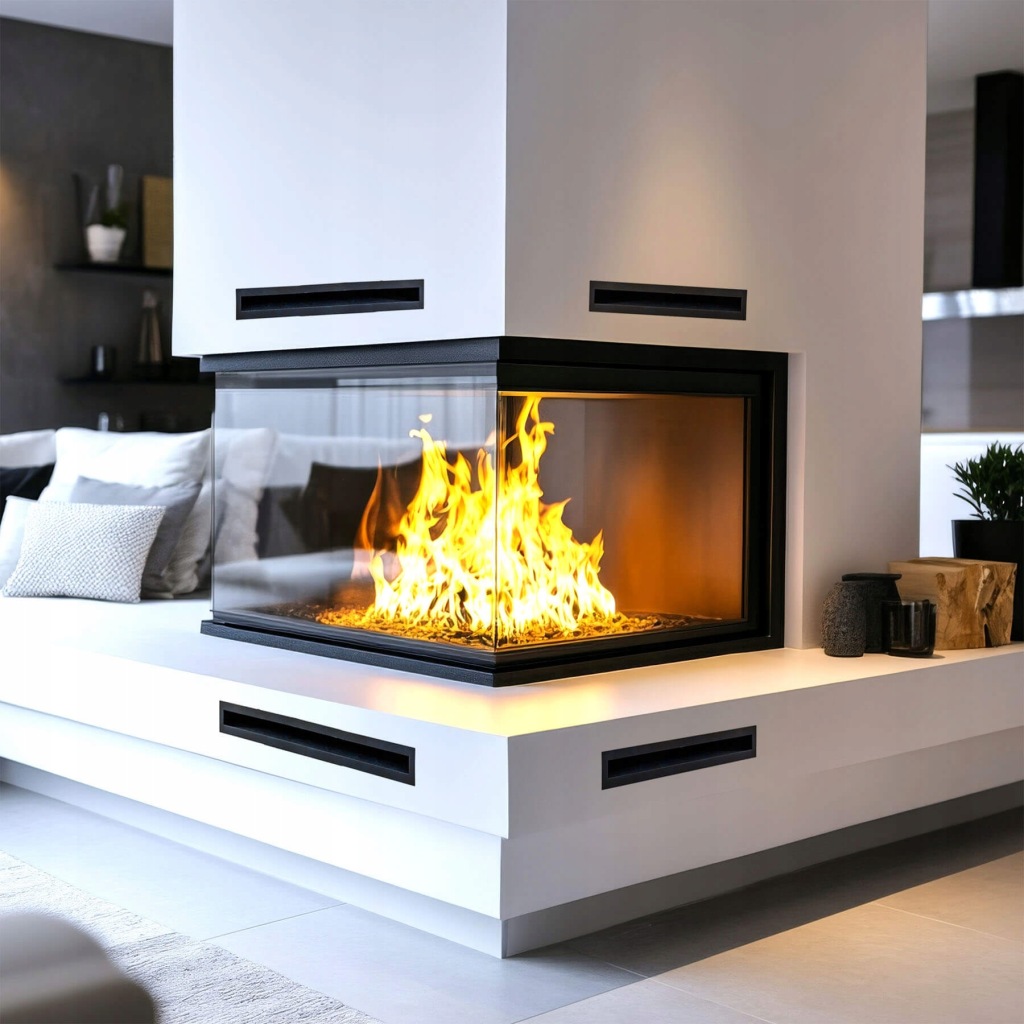 Jest ona instalowana w ścianie lub w czopuchu obudowy kominkowej.