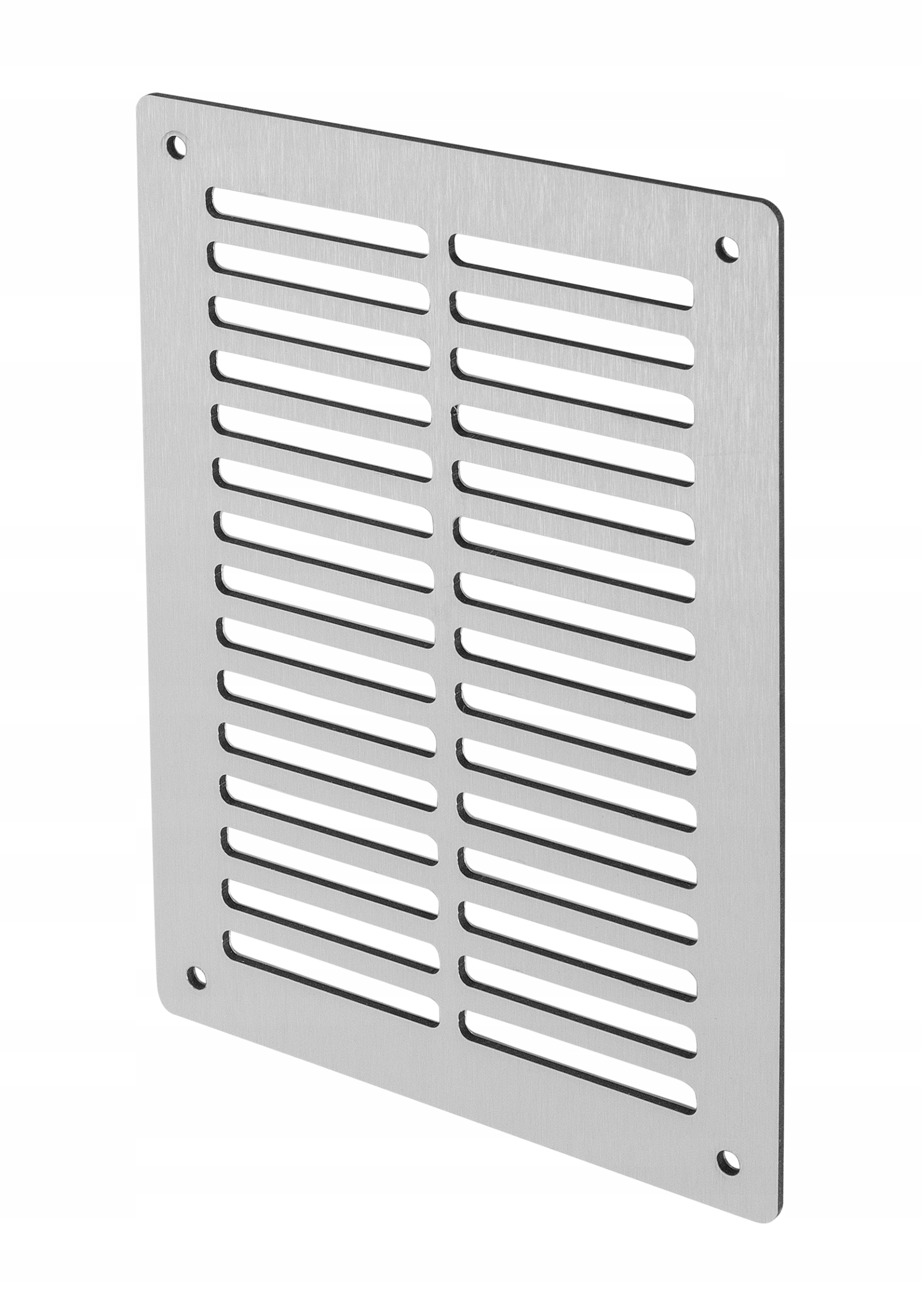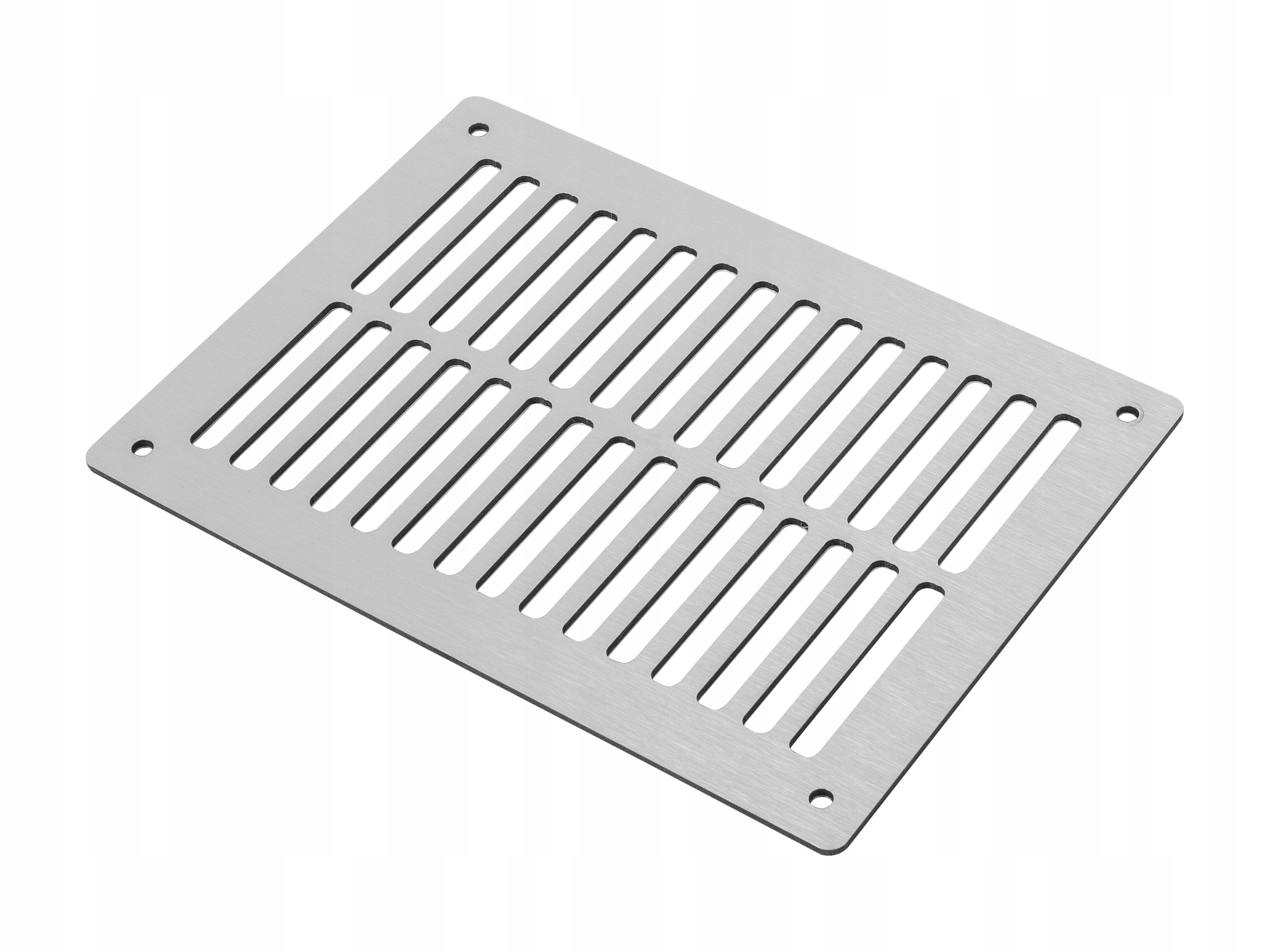 Kratka w kolorze srebrnym szczotkowanym pięknie wypełni miejsce wentylacyjne.