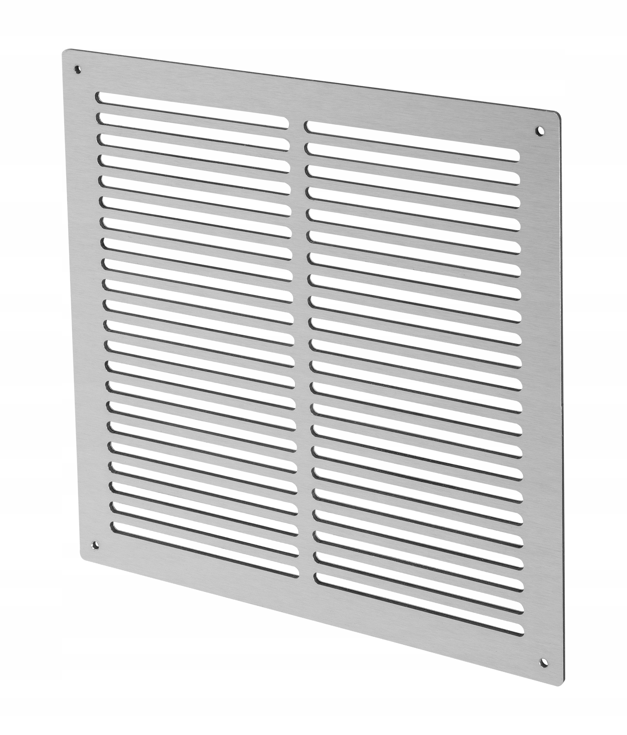 Kratka w kolorze srebrnym szczotkowanym pięknie wypełni miejsce wentylacyjne.