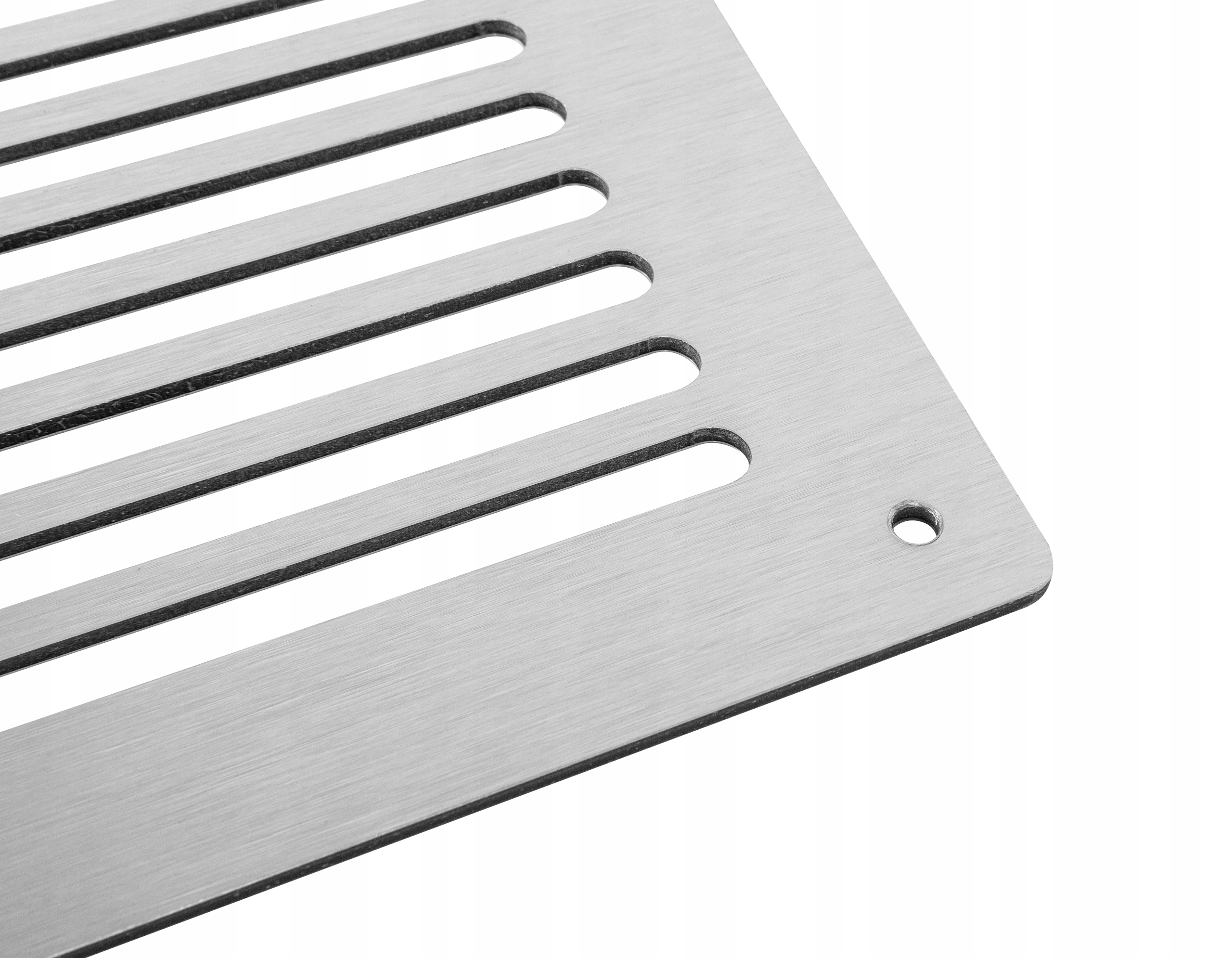 Kratka w kolorze srebrnym szczotkowanym pięknie wypełni miejsce wentylacyjne.