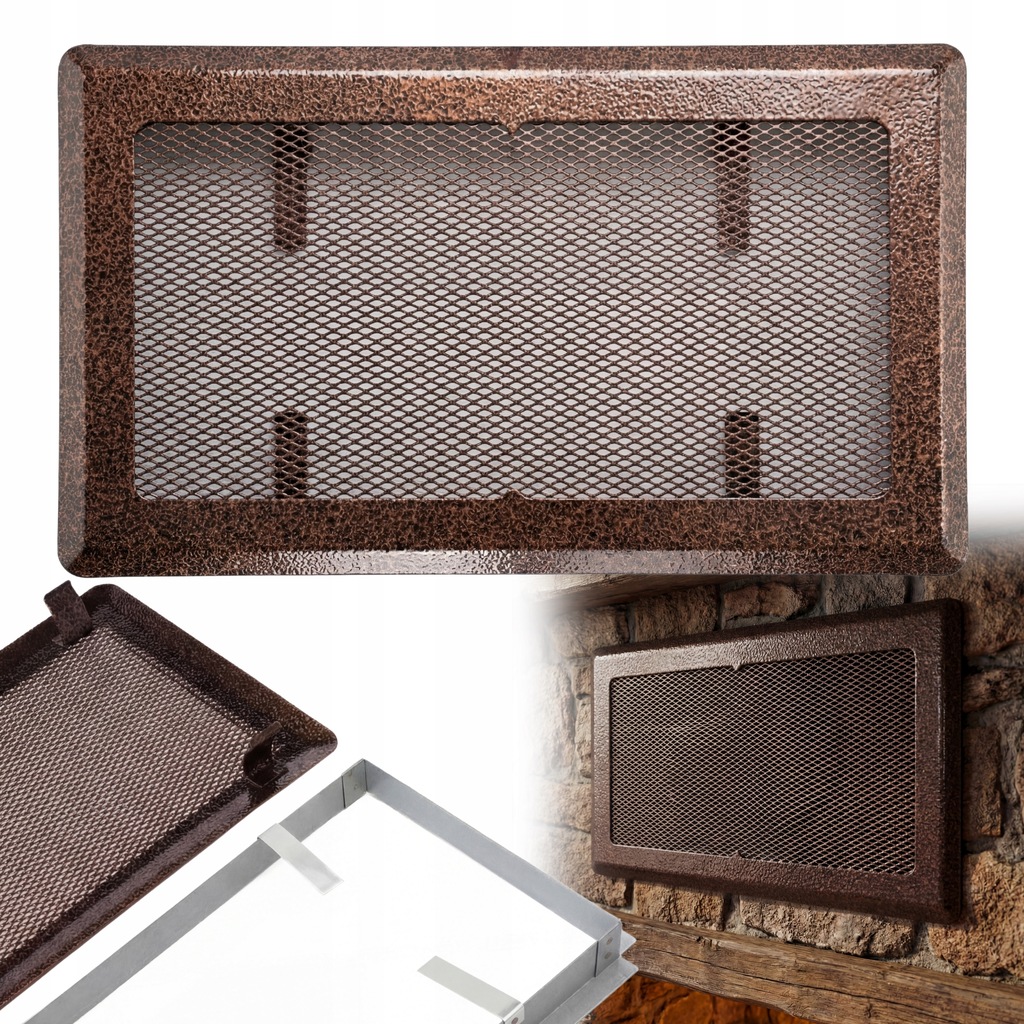 KRATKA WENTYLACYJNA KOMINKOWA KOMINOWA 16x30 cm METALOWA MALOWANA MIEDZIANA