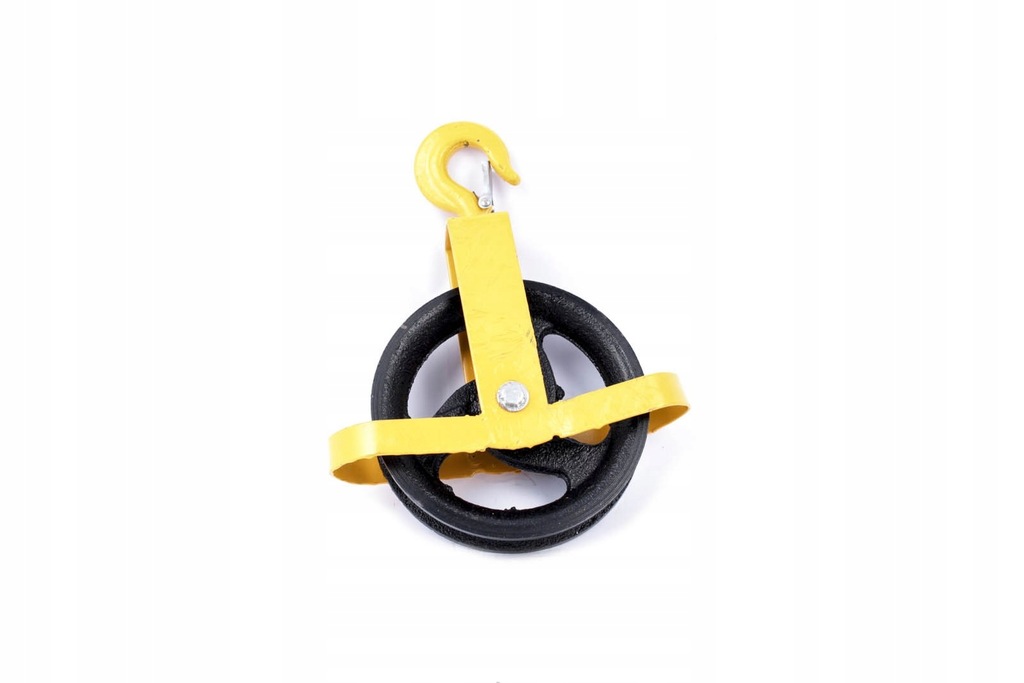 - Żeliwny krążek zapewnia stabilne prowadzenie liny, a dopuszczalne obciążenie robocze 350 kg pozwala na bezpieczną pracę w typowych zadaniach budowlanych i montażowych.