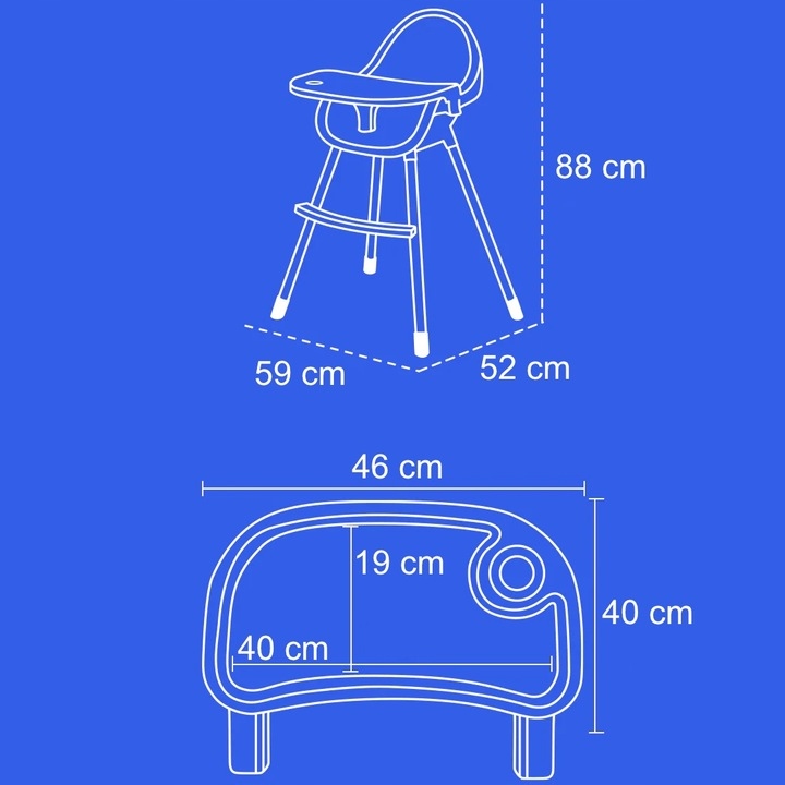 ▶ Do blatu dołączono wyjmowaną tackę, która wydaje się niezbędnym elementem w trakcie użytkowania krzesełka do jedzenia. Dzięki takiemu rozwiązaniu nawet, kiedy podczas wiercenia się i machania rączkami robi się bałagan, posprzątanie staje się znacznie prostsze.