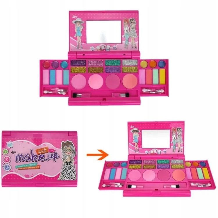 Walizka jest solidna i elegancka, idealnie nadaje się do przechowywania wszystkich kosmetyków. Jest łatwy do otwierania i zamykania, dzięki czemu dziecko może samodzielnie zarządzać swoją kolekcją kosmetyków.