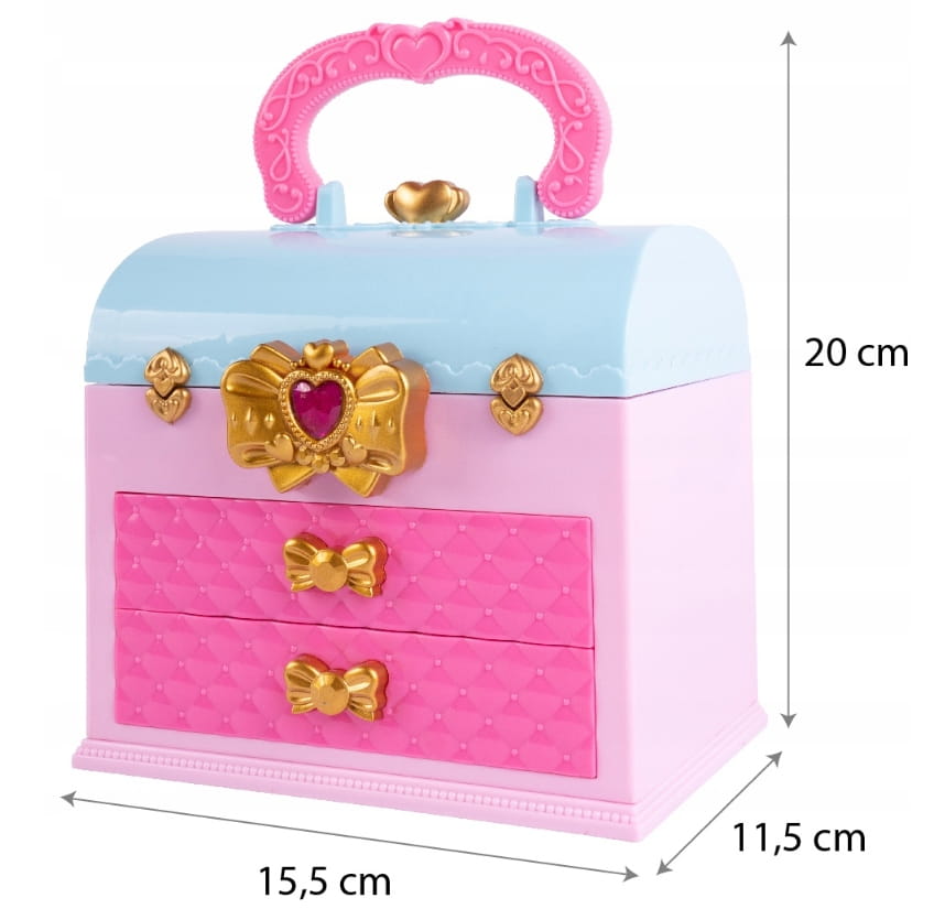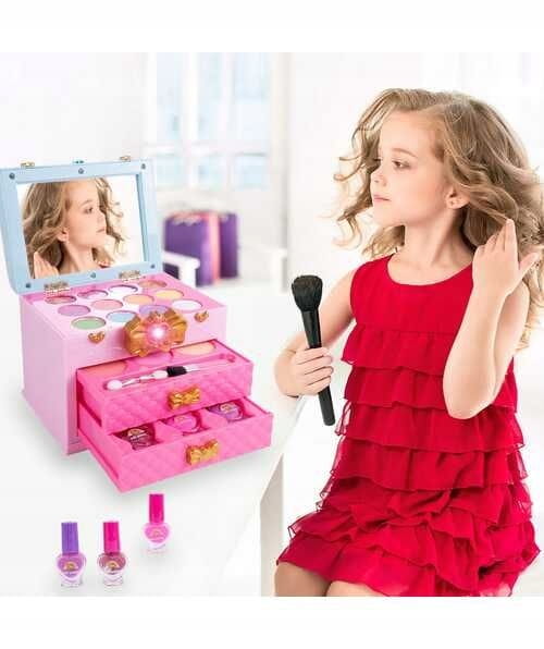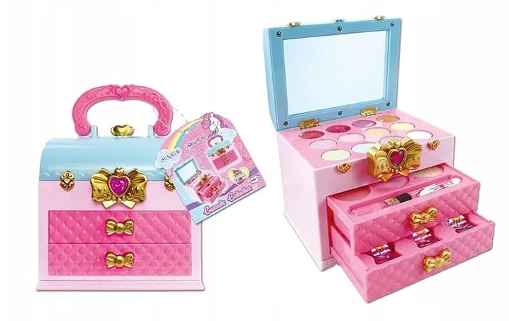 Walizka jest solidna i elegancka, idealnie nadaje się do przechowywania wszystkich kosmetyków. Jest łatwy do otwierania i zamykania, dzięki czemu dziecko może samodzielnie zarządzać swoją kolekcją kosmetyków.