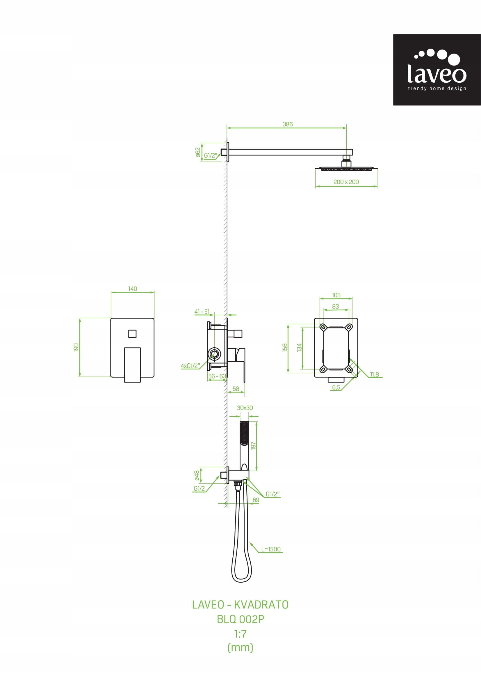 Bateria natryskowa podtynkowa z zestawem Laveo Kvadrato BLQ_702P