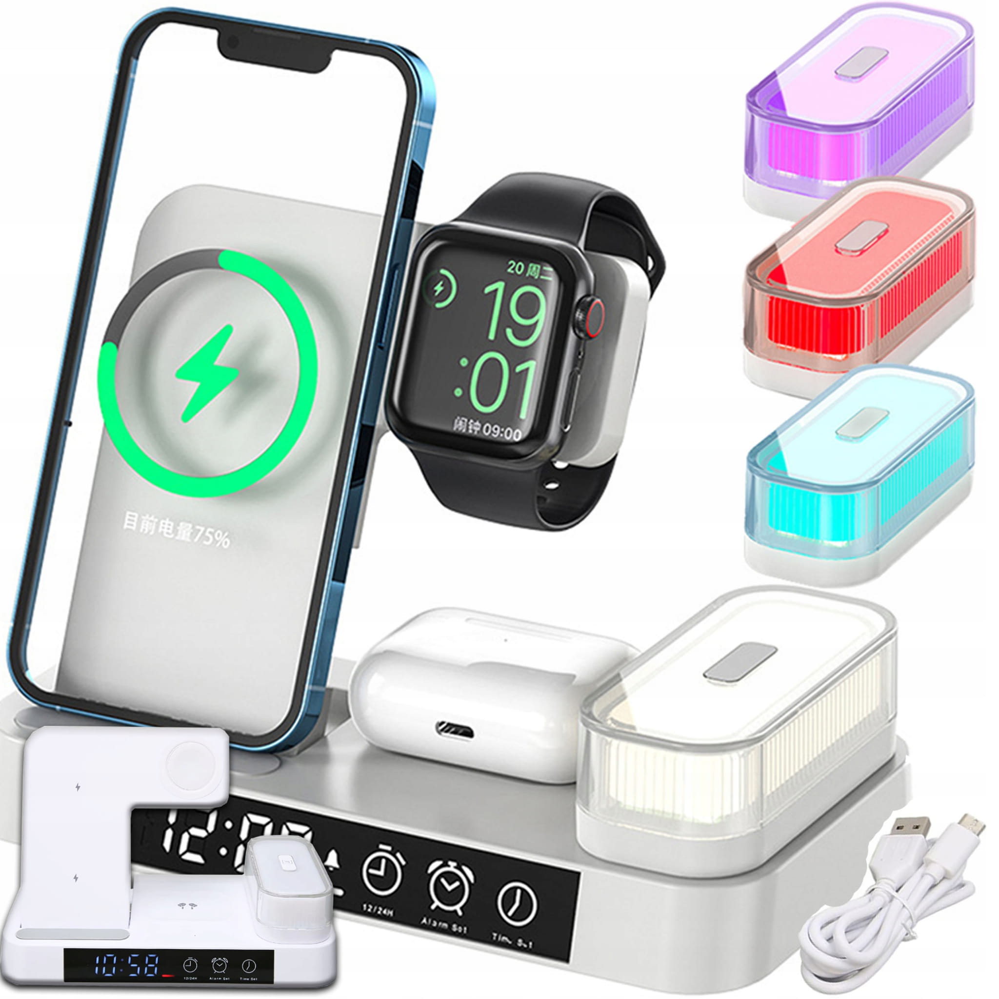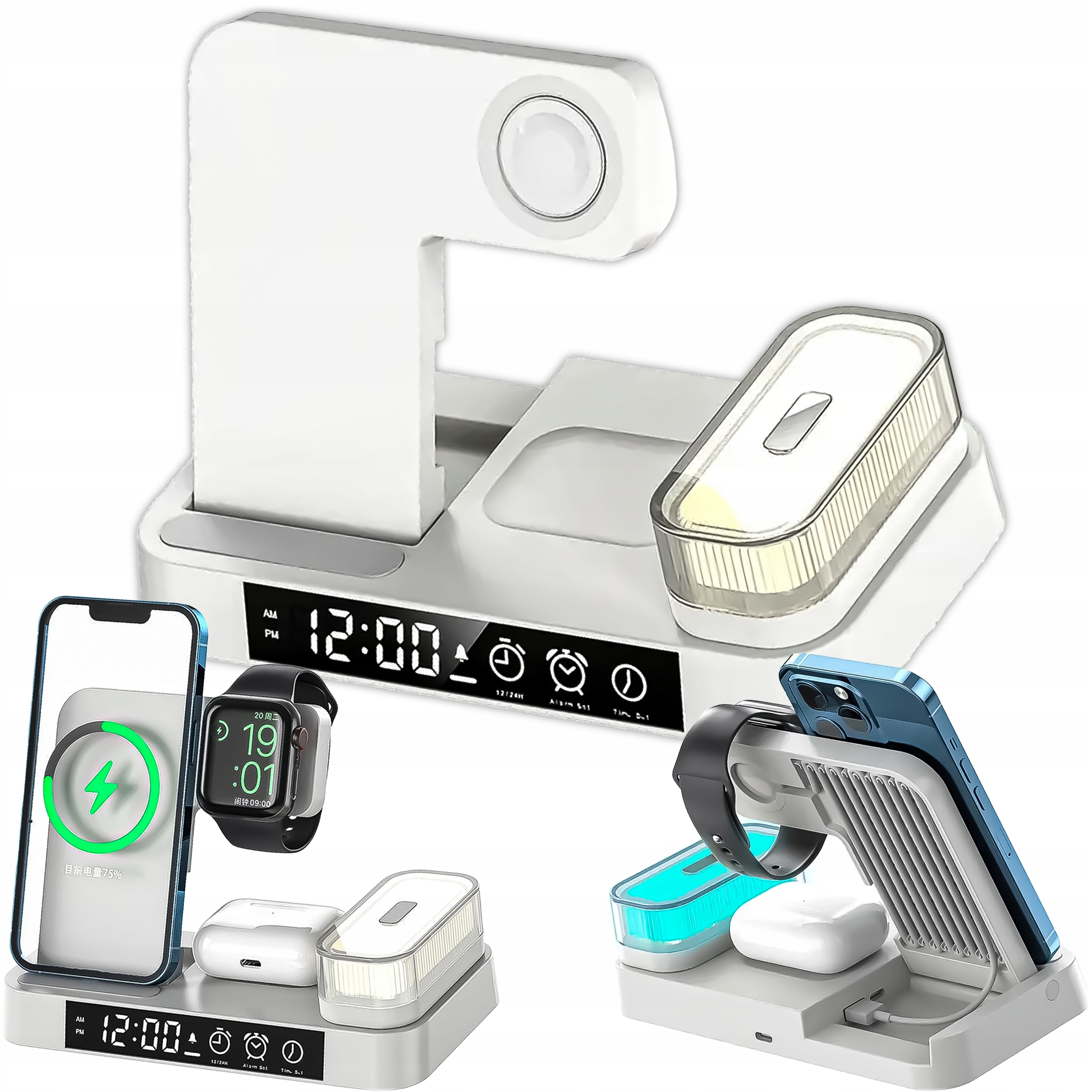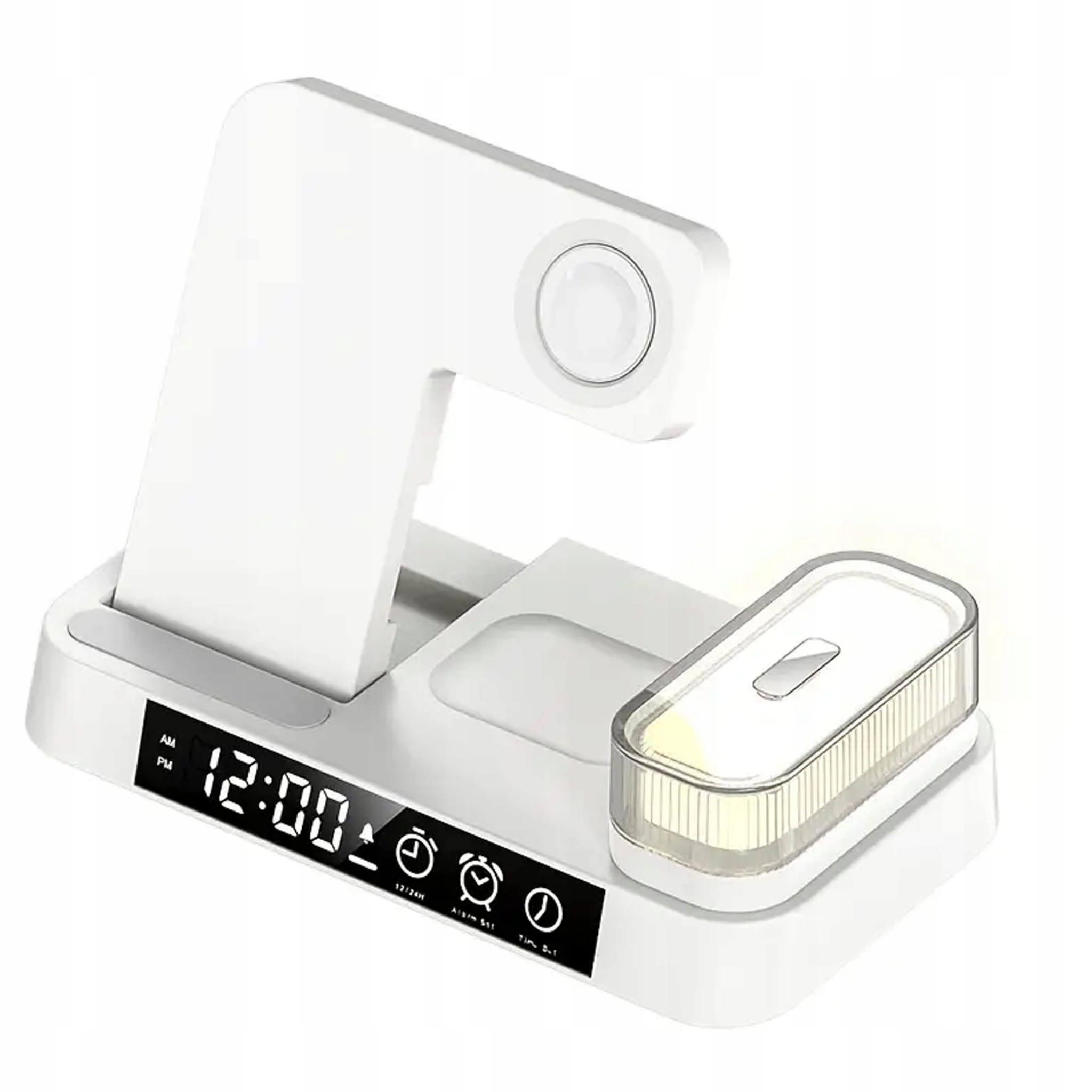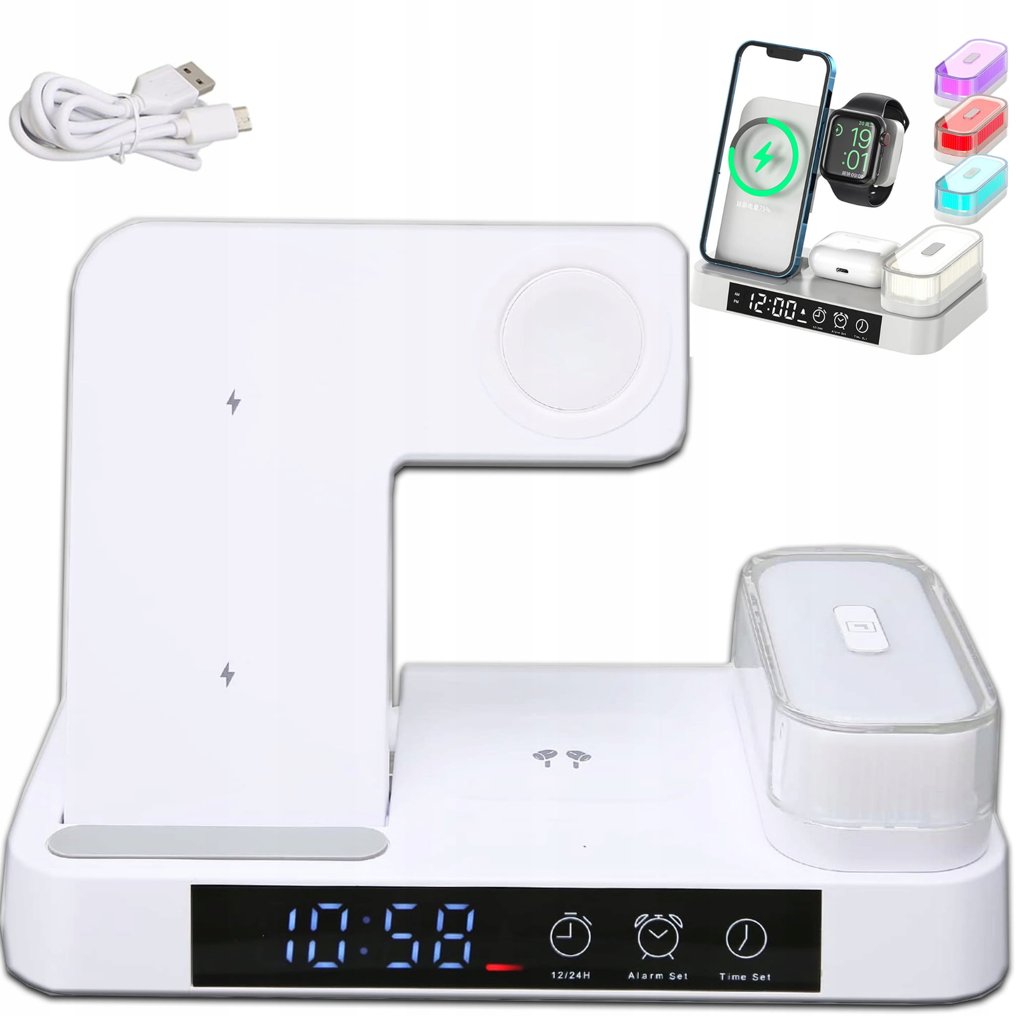ŁADOWARKA STACJA INDUKCYJNA DOKUJĄCA BEZPRZEWODOWA LAMPKA NOCNA 4W1 BIAŁA