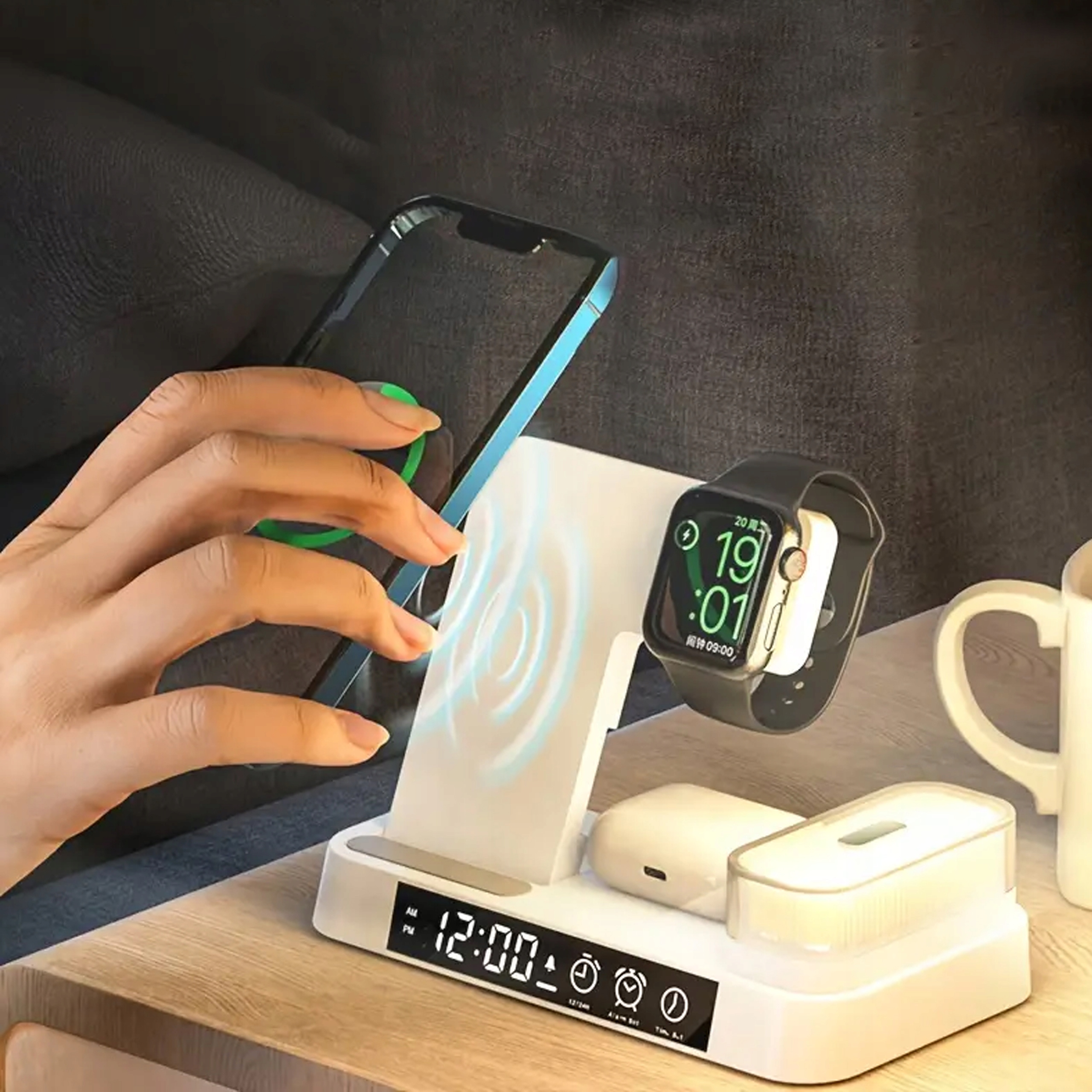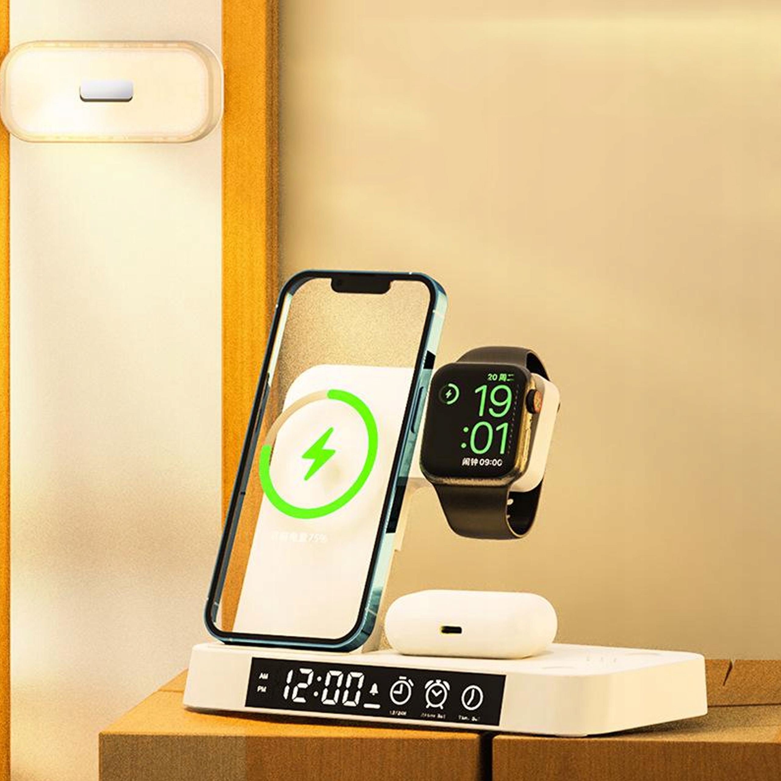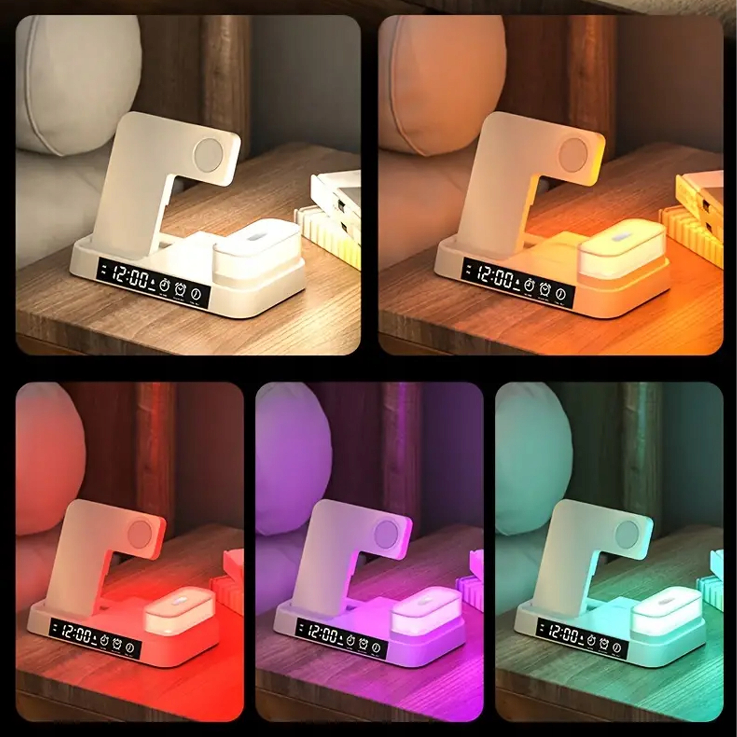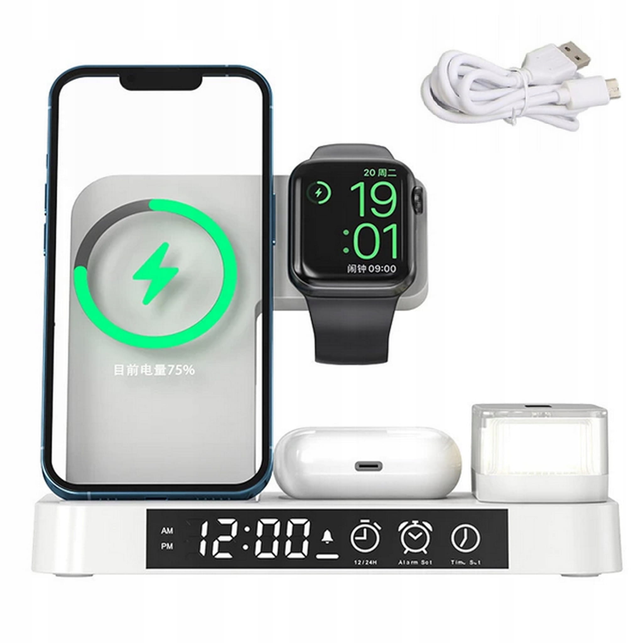 ŁADOWARKA STACJA INDUKCYJNA DOKUJĄCA BEZPRZEWODOWA LAMPKA NOCNA 4W1 BIAŁA