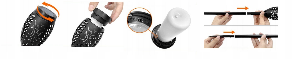 ✅ Włącznik pochodni schowany jest w wewnętrznej części lampy. Dostęp do niego jest niezwykle prosty, wystarczy obrócić i wyciągnąć część z panelem solarnym.