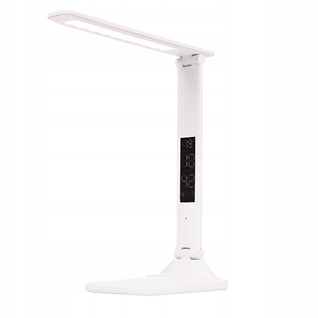 LAMPKA BIURKOWA WYŚWIETLACZ LED ZEGAR DATA TERMOMETR NA BIURKO BIAŁA