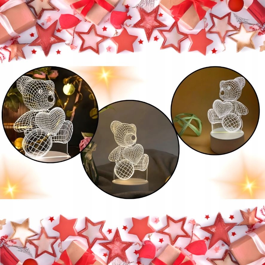 - Efekt 3D: Unikalny design tworzy trójwymiarową iluzję misia, która zachwyca dzieci i dorosłych, dodając magii każdemu wnętrzu.