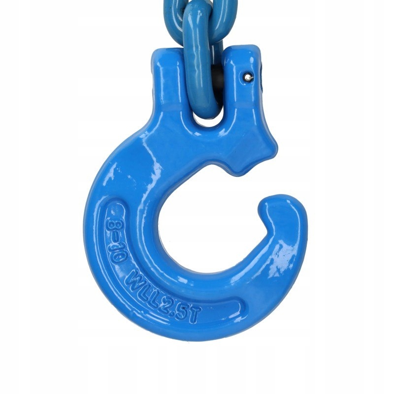 - Przed każdym użyciem kontrolować zużycie, odkształcenia, pęknięcia, wyciągnięcie ogniw i stan haków; nie używać elementów uszkodzonych lub niekompletnych.