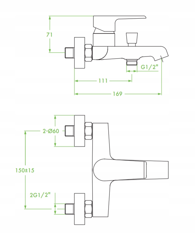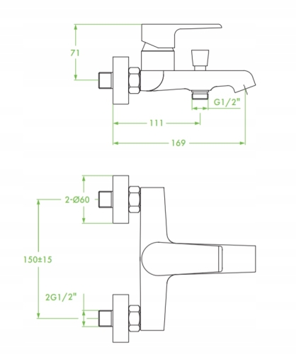 LARGO BATERIA WANNOWA ŚCIENNA BEZ ZEST. NATRYSK. - BAH_710D