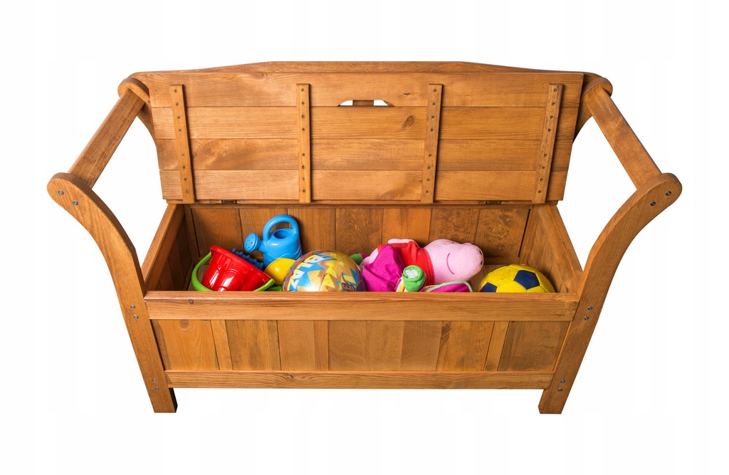 - Siedzisko to również drewniana skrzynka, na przykład na poduszki, narzędzia czy zabawki