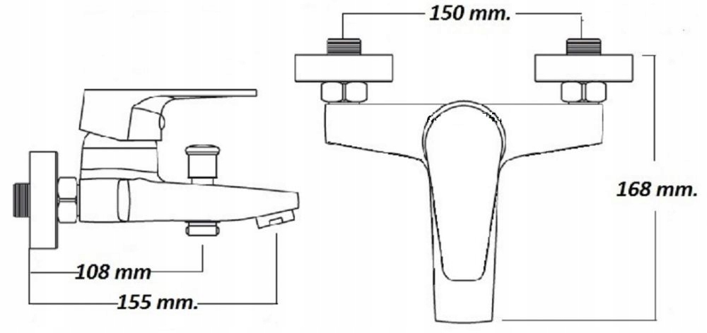 LUGA – BATERIA WANNOWA ŚCIENNA BEZ ZESTAWU NATRYSKOWEGO - BQL_010D