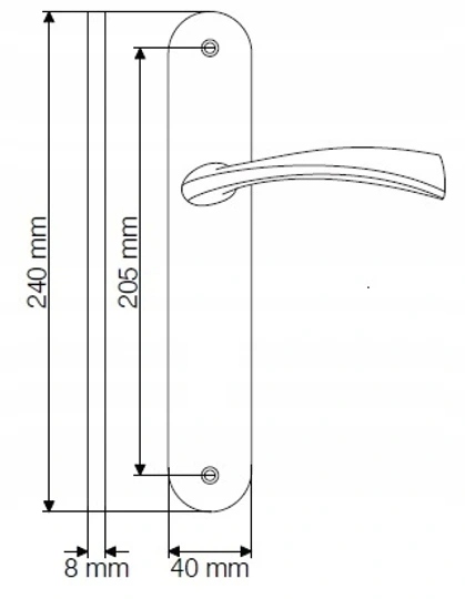 MALTA KLAMKA NA DŁUGI SZYLDZIE NA KLUCZ SATYNA MAT