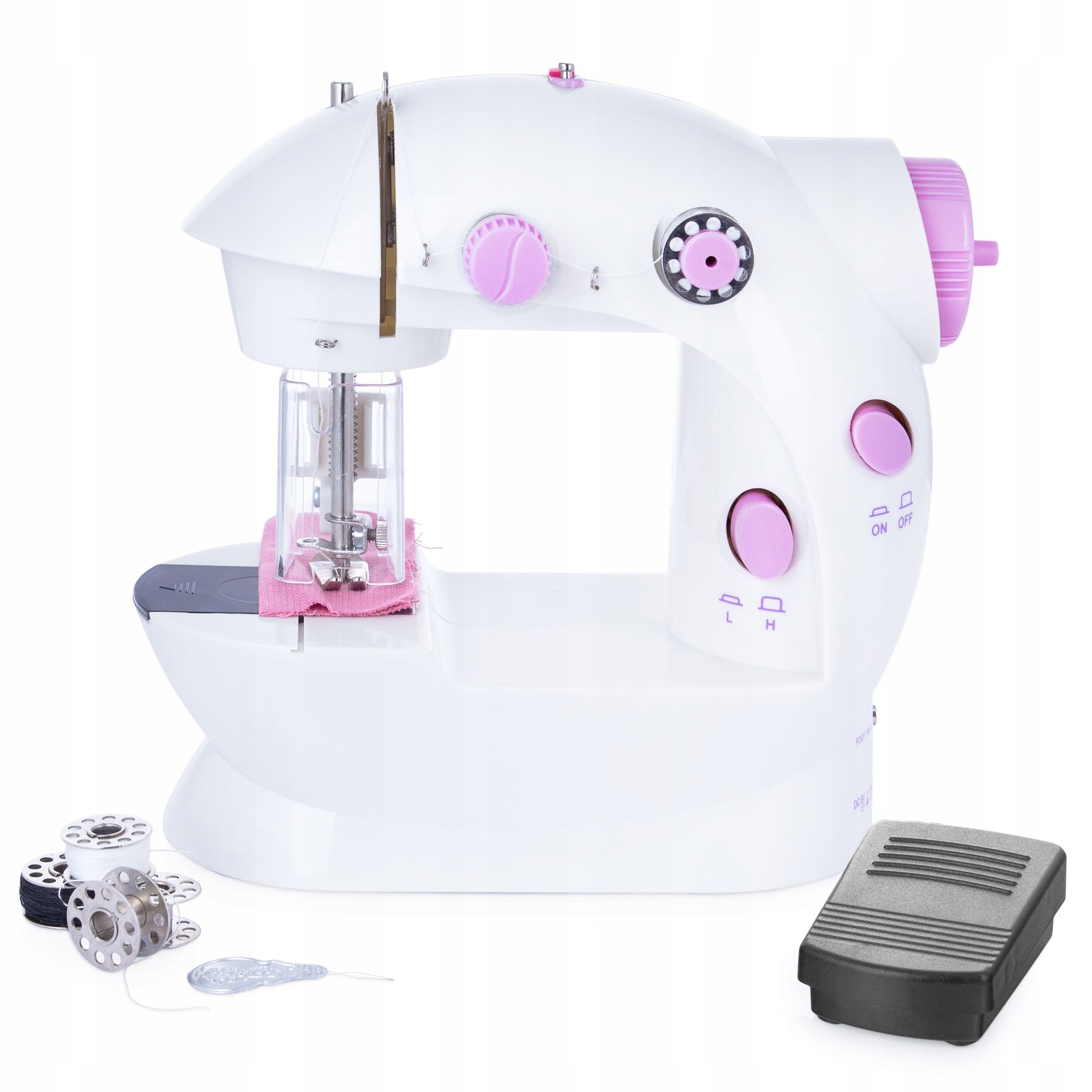 - dołączony do zestawu pedał pozwalający na obsługę maszyny przy pomocy stopy,