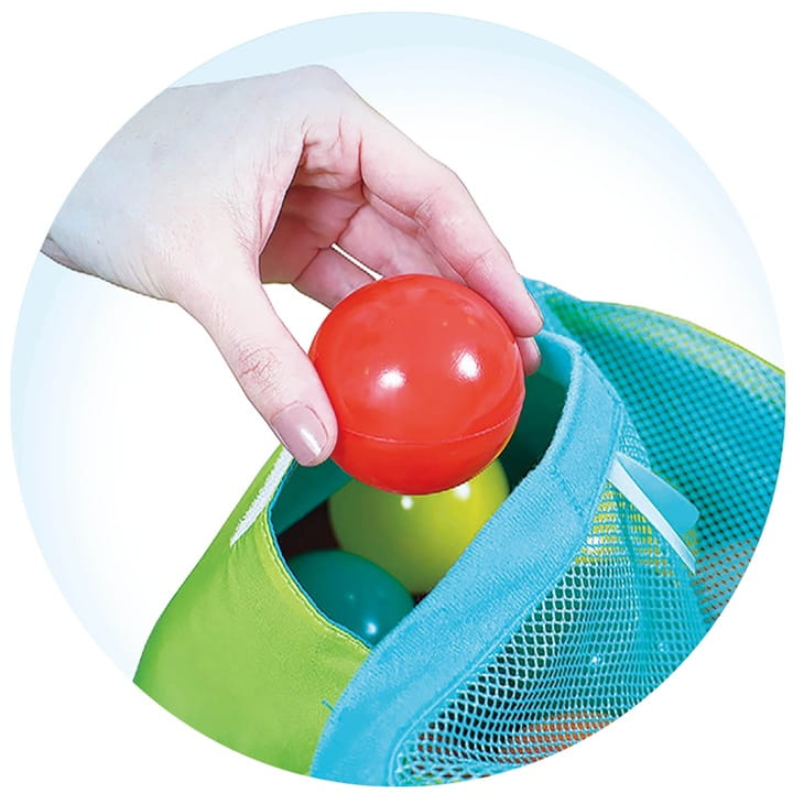 - W zestawie 12 kolorowych piłek (4 zielone, 4 niebieskie, 4 pomarańczowe).