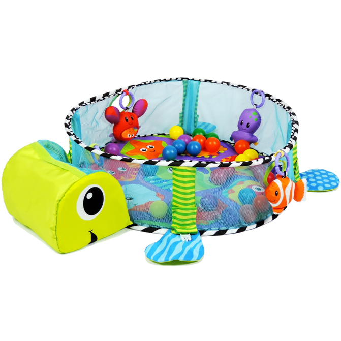 To ustawienie stosujemy, gdy maluch samodzielnie już siedzi. Kolorowe piłki jak i zabawki przyczepiane do boków zapewnia mu mnóstwo wesołej zabawy.
