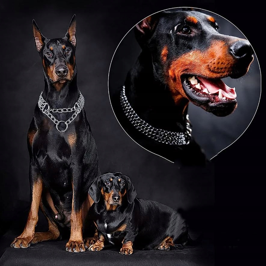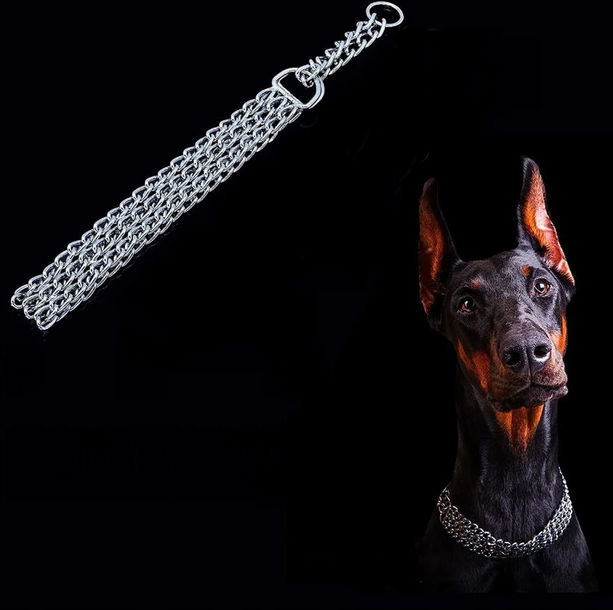 ✨ MOCNA OBROŻA ZACISKOWA METALOWA ŁAŃCUSZKOWA 3 RZĘDY DLA PSA 45 CM ŁAŃCUCH
