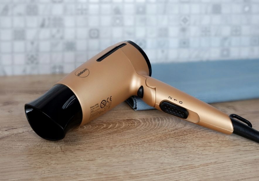 MOCNA SUSZARKA DO WŁOSÓW ELDOM 1600 W JONIZACJA 2 POZIOMY NADMUCHU ZŁOTY